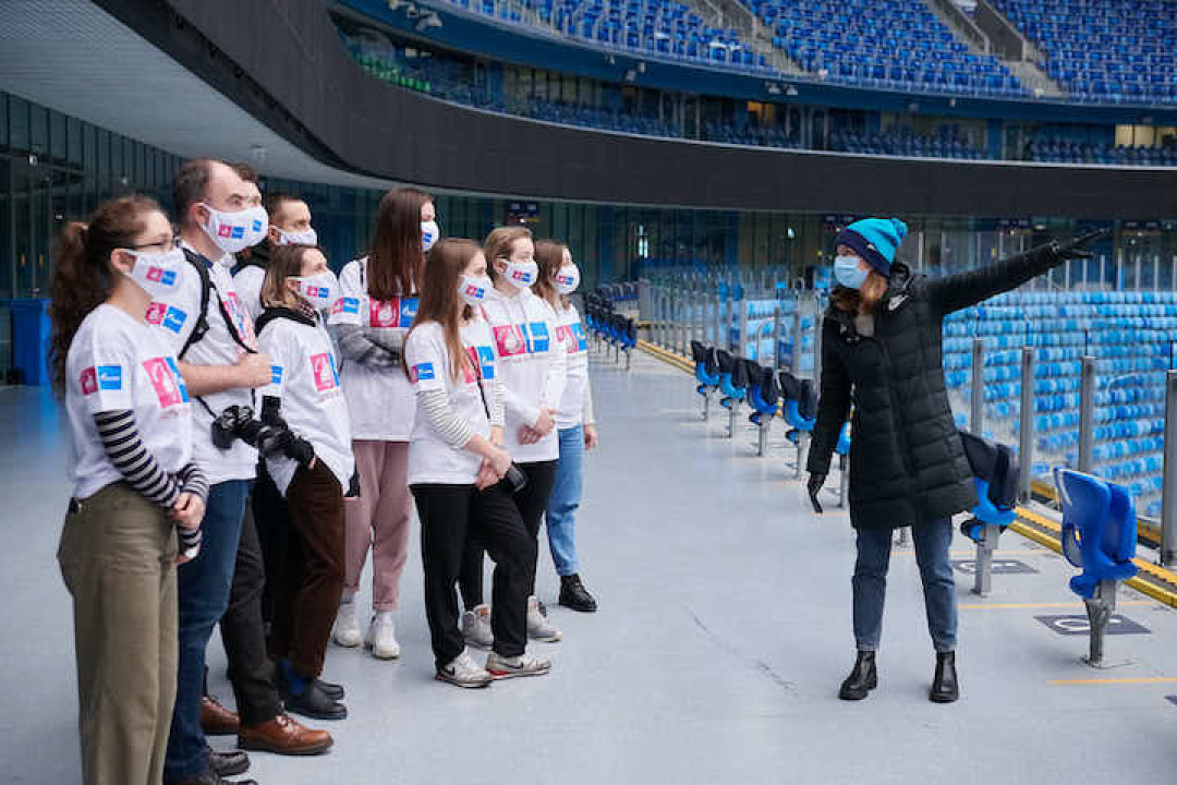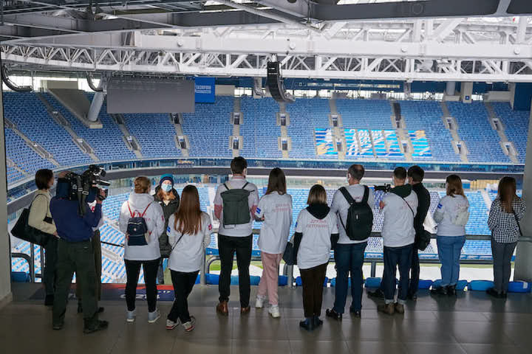 В мире всего пять стадионов, где есть и выкатное поле, и раздвижная крыша, но наш — самый крупный. С техническим оснащением иинновационным устройством «Газпром Арены» познакомились студенты архитектурно-строительного университета, колледжей «Кировский» и «СПАСК». Футбол, хоккей, концерты — просто фантастика, насколько быстро стадион можно перевести из одного состояния в другое. Заглянули ребята и в раздевалки игроков, потом поднялись наверх и полюбовались эффектной панорамой города.