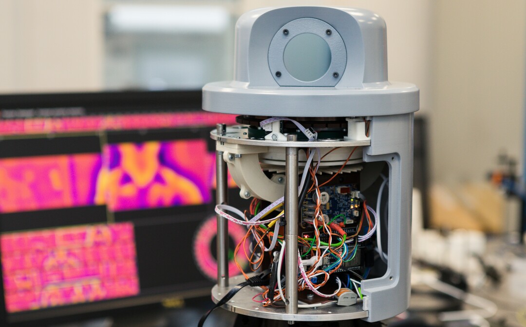 Для обнаружения объектов в условиях недостаточной освещенности, тумана, темноты или маскировки применяют камеры дальнего инфракрасного диапазона — тепловизоры. Ученые ИТМО предложили систему высокоскоростного панорамного сканирования с накоплением сигнала «ГироВизор-Т». При таком подходе используют лишь один тепловизор, который при помощи оптико-механической системы непрерывно просматривает окружающую обстановку. Разработка спроектирована для работы с доступными тепловизорами неохлаждаемого типа и может долго работать в непрерывном режиме без технического обслуживания.