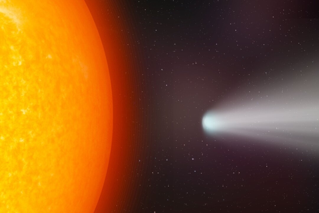 Борис Эскин: Скоро она пройдет на минимальном расстоянии от Солнца — 1.3 астрономической единицы (1.3 радиуса земной орбиты). А в декабре она пройдет на минимальном расстоянии от Земли — 1.8 радиуса земной орбиты, что почти в 2 раза дальше, чем расстояние до Солнца.