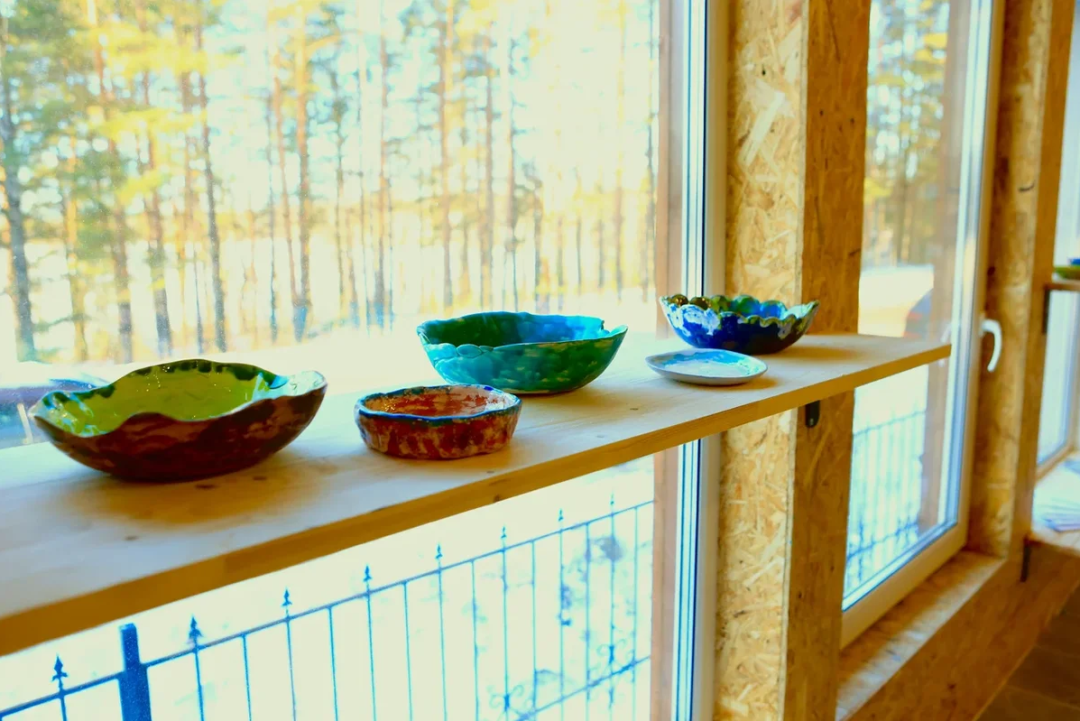 Поэтому мы сначала сделали в небольшой палатке керамическую мастерскую, в которую могут приходить все желающие: взрослые, дети, любые жители этой или ближайших деревень. Через некоторое время центр духовно-трудовой реабилитации для семей, имеющих детей с ограниченными возможностями, «Мария» нашел донора, пожелавшего остаться неизвестным. Он, глядя на эту палатку, сказал: «Надо вам построить мастерскую». На волонтерской основе дизайнер сделала проект, и домик возвели за три летних месяца.