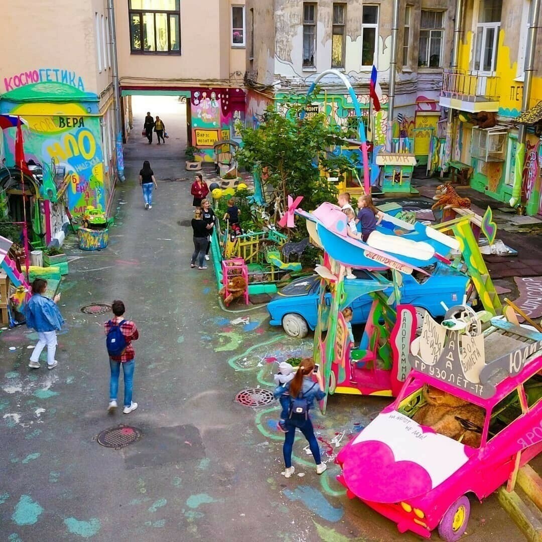 Жить хорошо хотелось. Сначала оборудовал помещение для себя, а весной 2011 года взялся за двор. Первым объектом для творчества стало окно — покрасил раму в розовый цвет. Девчонки приходили, фотографировались. Увидел, что людям мои художества понравились — и стал продолжать. Раскрашивал старые автомобили с позволения собственников, часть арт-объектов приносили жильцы.