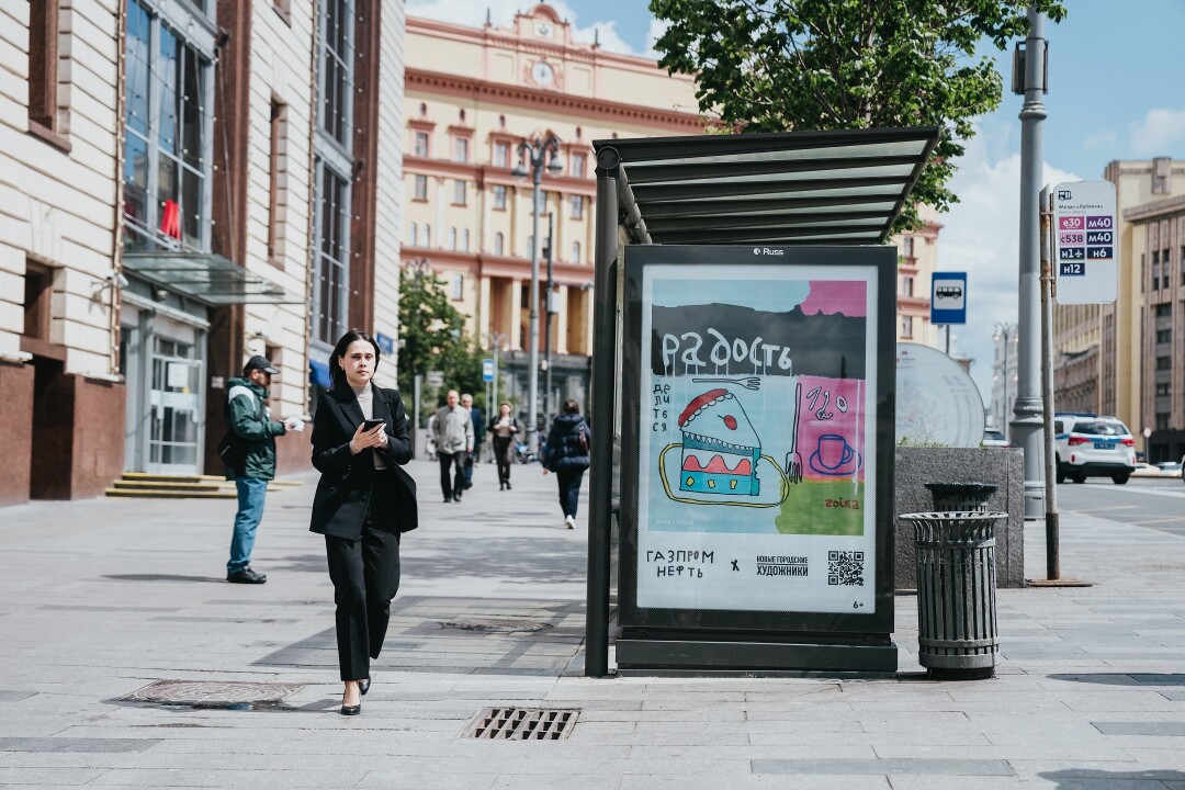 Выставка под открытым небом — проект сообщества «Новые городские художники» и «Газпром нефти». Компания помогает волонтерам находить новые таланты в домах-интернатах. А уличные галереи делают работы «невидимых» авторов заметными (в самом прямом смысле слова!). Вместо афиш и баннеров — работы художников-самоучек в стиле наивного искусства. В качестве холстов — рекламные конструкции на улицах Москвы, Петербурга и городов Сибири.
