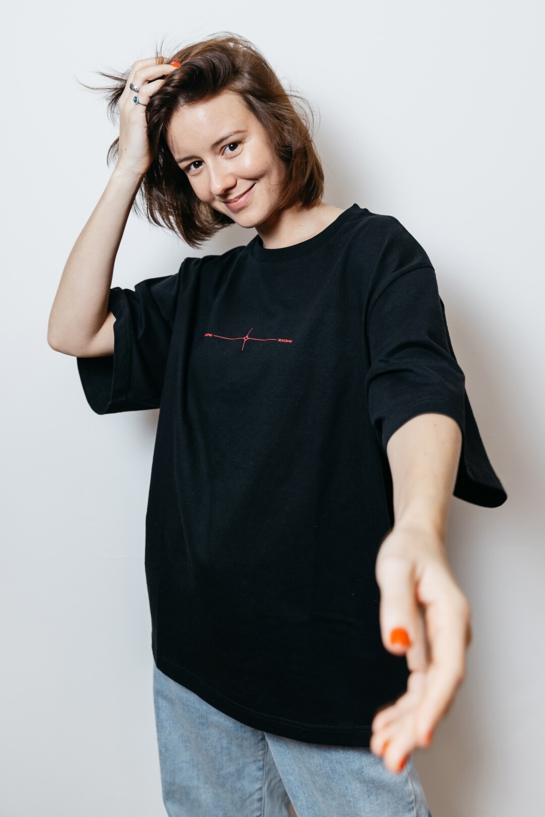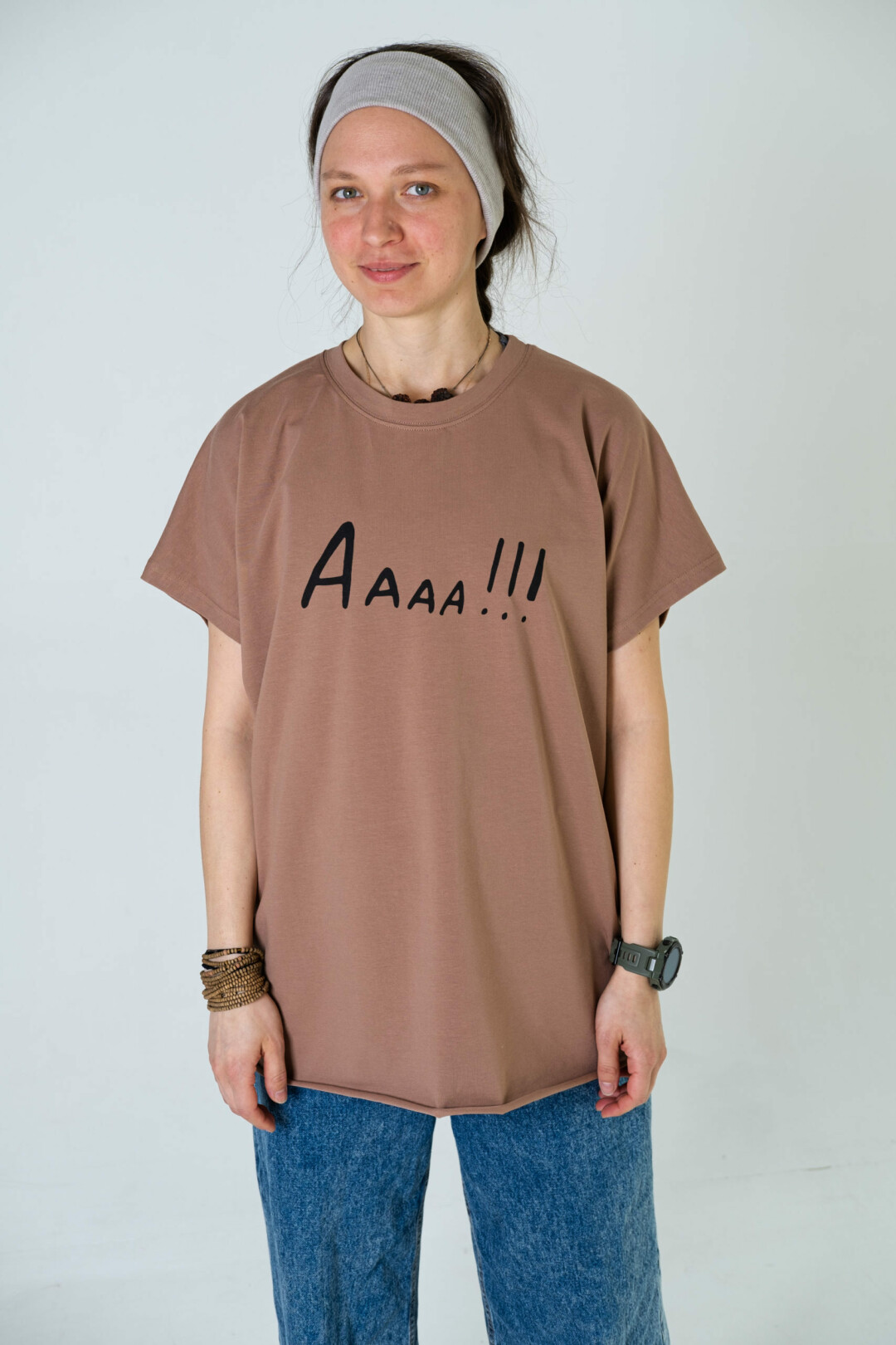 Коллекция хлопковых футболок свободного кроя с авторскими принтами художников графической мастерской «Простых вещей»: «Что же с нами стала» и «Аааа!!!!» — хорошие ответы на все вопросы в конце года. Средства с продажи пойдут на работу мастерских, где трудятся люди с особенностями психики и интеллекта.