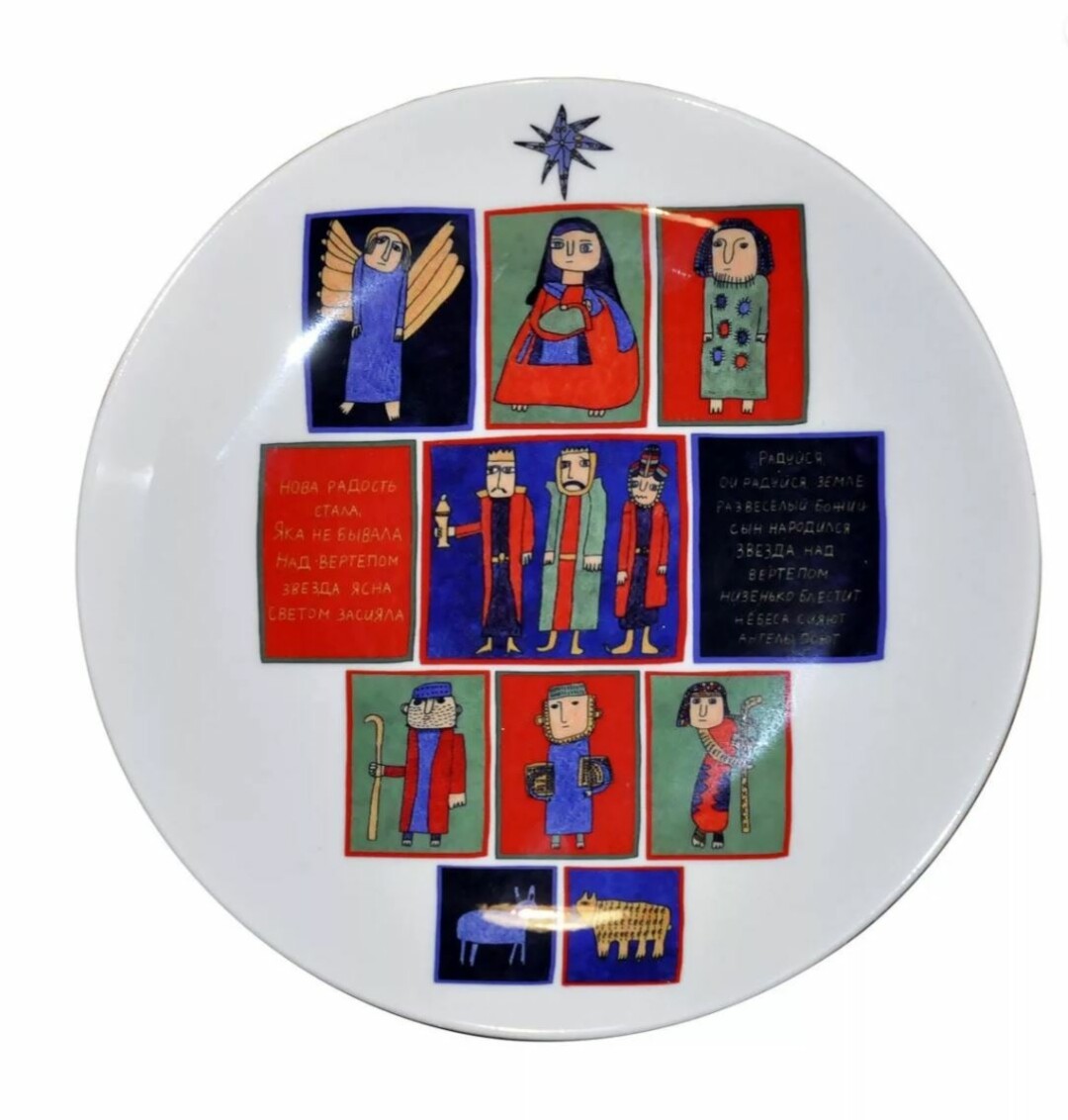 Это сувенирная тарелка с рисунком подопечного «Наивно? Очень» — фонда, придуманного актрисой Нелли Уваровой, знакомой многим по главной роли в сериале «Не родись красивой». В центре люди с тяжелыми психоневрологическими нарушениями занимаются арт-терапией, а результаты их труда можно приобрести в магазине фонда: картины и рисунки, одежду, текстиль для дома, магниты и многое другое.