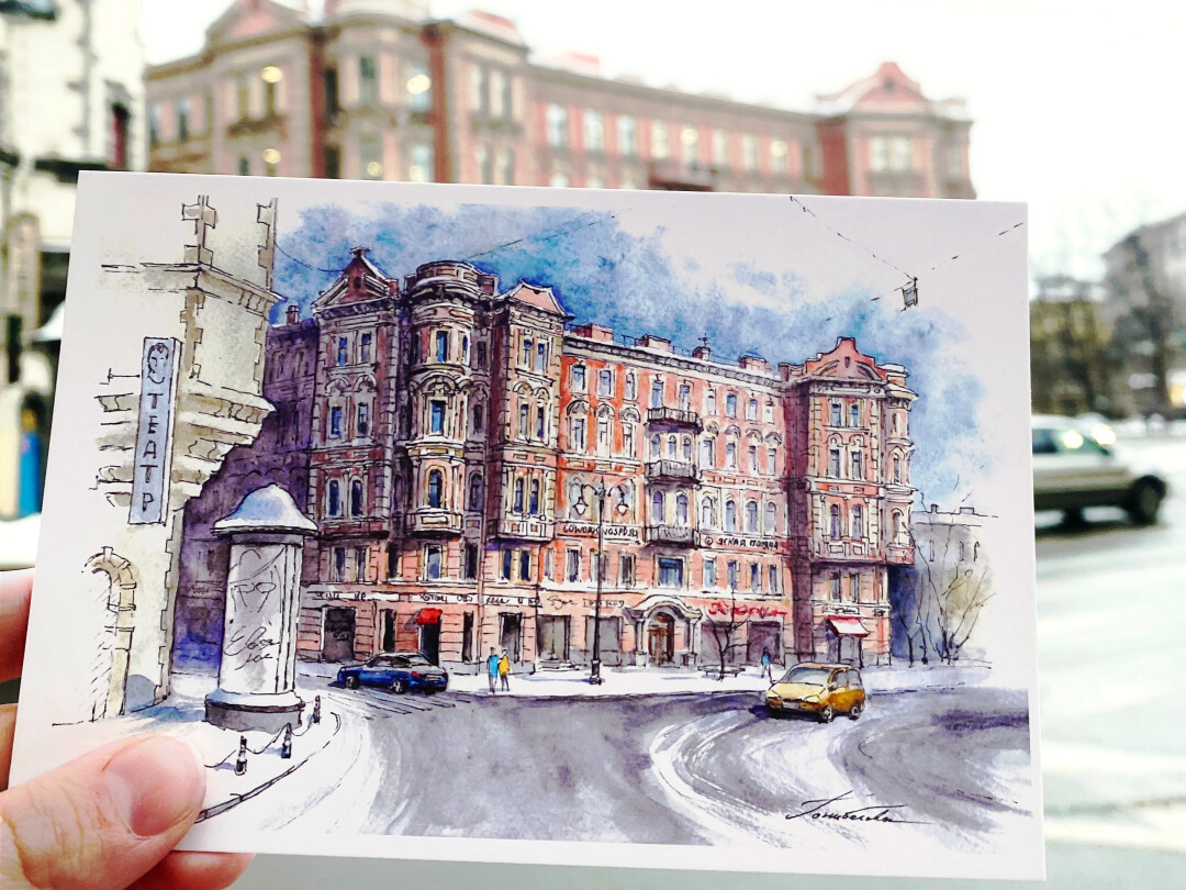 Маршрут посвящен необычным инженерным решениям в строительстве. В него вошли 12 зданий, по которым художники создали открытки на память.