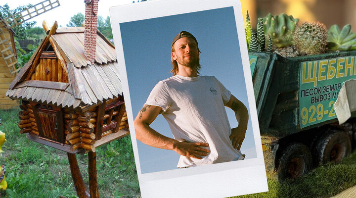 Я постоянно что-то изобретал: строил шалаши, малые архитектурные формы для сада. В 15 лет придумал первое изделие — избушку на курьих ножках из дров и корня клена. Изначально у нее была декоративная функция, но со временем ее облюбовали птицы. Одна избушка до сих пор стоит у бабушки в саду, еще несколько — у соседей.