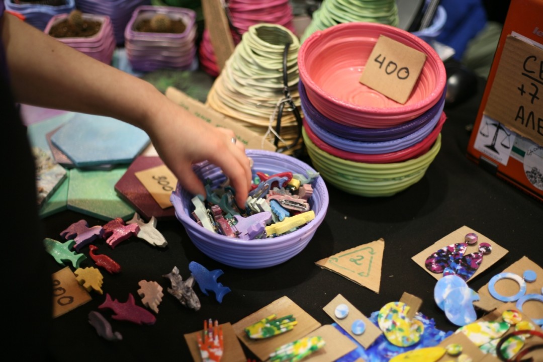 Особенность нашего проекта заключается в том, что у нас есть возможность работать с пластиком руками, использовать кисти, шпатель и делать с их помощью имиджевую продукцию. Это новый уровень – на сегодняшний день в России такого нет. Все, кто использует вторичный пластик, просто льют формы, например, делают большие урны – это скучно. Сейчас у нас сформировалась небольшая линейка продукции, которую нам не стыдно показать. Недавно мы участвовали в экологическом фестивале «Знак равенства» и даже заработали на этом какие-то деньги. Конечно, мы до сих в минусе, но верим, что наше дело будет окупаться.