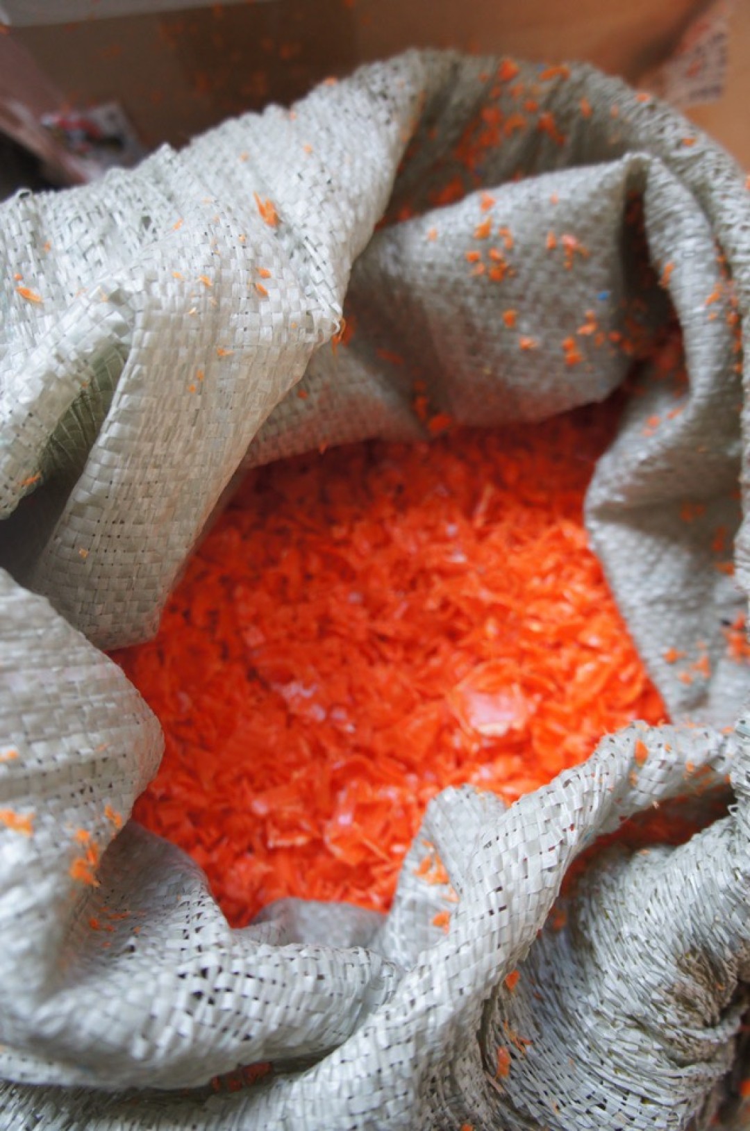 Всего у нас есть три канала поступления пластика: нам приносят его люди, мы покупаем его у «Раздельного сбора» и «Крышечек доброты», у которых очень качественный материал, сортированный по цветам.
