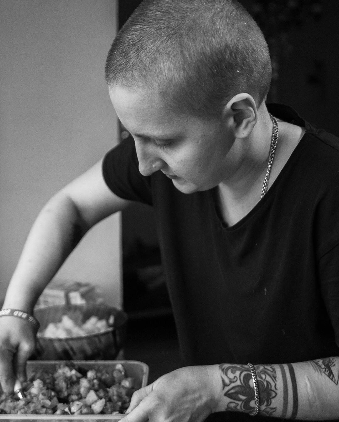 В какой-то момент девушка на первом свидании сказала мне: «Люди, которые кормят бездомных, таким важным делом занимаются». А я давно думала о том, чтобы начать это делать, так что решила наконец взять и попробовать. Когда мы говорим «бездомный», то сразу вспоминаем «Ночлежку», поэтому я с ними связалась и предложила готовить для их ночного автобуса. Сейчас по понедельникам я готовлю 60 литров супа, а по пятницам – 24. «Ночлежка» попросила меня готовить в один день только один суп, чтобы у людей не возникало конфликтов, поэтому продукты оставались. Я в соцсетях написала, что могу отдавать еду любым нуждающимся – люди пишут мне, я говорю адрес и время, в которое можно прийти, раздаю по вторникам и пятницам. Они приносят свою посуду, я или волонтер забираем ее у парадной, накладываем и отдаем. Еды можно взять сколько нужно – для всех членов семьи или на несколько дней. Лишних вопросов я не задаю – если человек пришел, значит ему действительно нужно. Регулярно мне помогают волонтеры – обычно это два-три человека в дни готовки.
