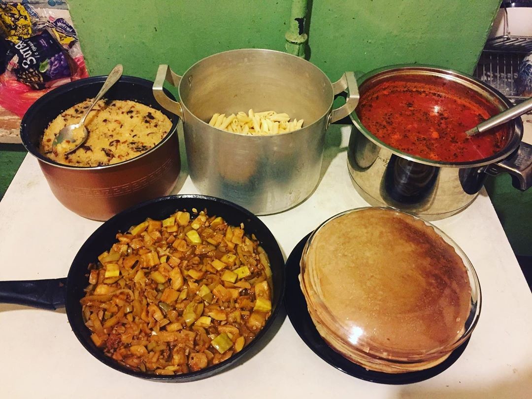 Все, что я готовлю, сделано из спасенной еды – то есть той, которую собирались выбросить из-за «потери товарного вида». Про огромные масштабы выбрасывания продуктов я узнала не так давно на одном мероприятии – раньше просто не задумывалась об этом. Я познакомилась с девушкой-фриганом, попросила ее рассказать мне про спасенную еду. Она отвела меня к задним дворам магазинов, и я увидела невероятное количество продуктов в мусоре рядом с супермаркетами – и далеко не все из этого просроченное, многое просто мятое или с немного поврежденной упаковкой. Я при этом ипохондрик – я знаю про ребят, которые достают продукты из баков, но сама так не могу. Я стала приходить в овощные лавки и просить отдавать мне фрукты и овощи до того, как их выбросят. Сначала я договорилась с семью лавками, потом на меня стали выходить несетевые магазины и самостоятельно отдавать продукты, периодически звонят предприятия, которые закрываются, и просят срочно вывести, например, 100 кг муки. Тогда приходится тратиться на транспортировку. Иногда приготовленную еду вечерами отдают столовые.