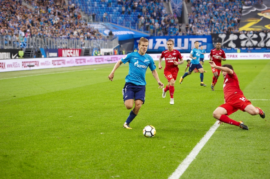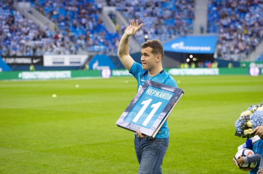 В минувшее воскресенье завершился матч четвертого тура чемпионата России «Зенит» — «Спартак». Сине-бело-голубые разгромили московский клуб со счетом 5:1. На стадионе «Санкт-Петербург» фанаты «Зенита» попрощались с форвардом Александром Кержаковым, который завершил карьеру футболиста и получил должность в клубе. Он не сумел сдержать слез, глядя на баннеры болельщиков. Вспоминаем лучшие моменты уже легендарного матча.
