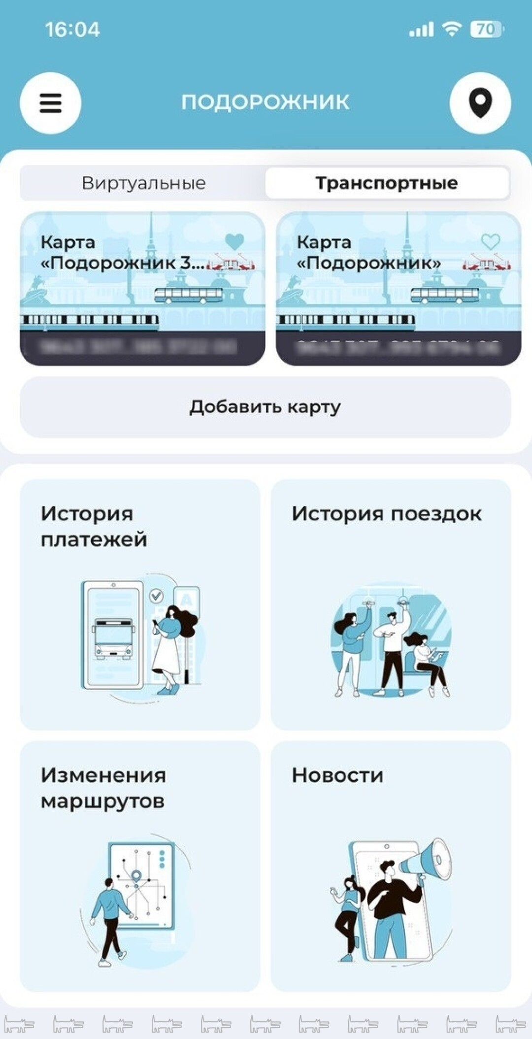 Сервис устроен интуитивно понятно: мне потребовалось около 10 минут, чтобы разобраться что к чему. Во вкладке "Транспортные карты" можно добавить уже использованную ранее пластиковую карту "Подорожник". Для этого нужно ввести номер проездного, указанного на лицевой стороне физического носителя. Правда, расплачиваться им виртуально не получится, можно только пополнить.