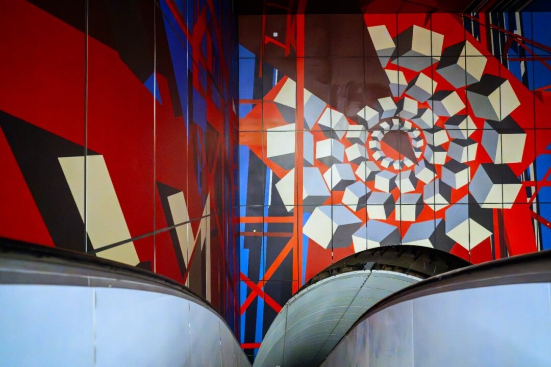 На станции метро «Путиловская» полностью смонтировали декоративное панно, сообщает губернатор Петербурга Александр Беглов. Оно выполнено из сотовых алюминиевых панелей с печатным изображением.