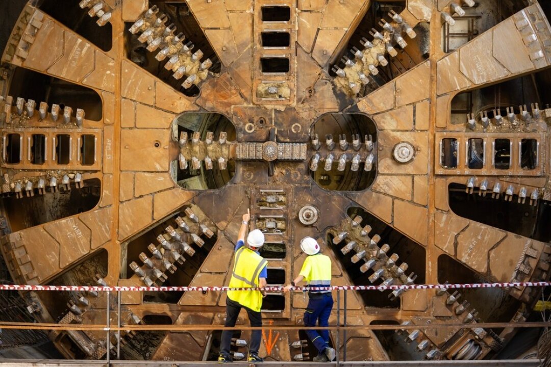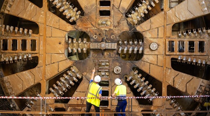Сначала проходческий щит строит тоннель, затем в подземном коридоре укладывают рельсы, объясняет инженер. Сам монтаж рельсо-шпальной решетки проходит поэтапно. Сначала бетонируют основание, затем укладывают монтажные рельсы и крепят к ним железобетонные полушпалки. После этого конструкцию домкратами выставляют в проектное положение, проверяют параметры пути и только затем заливают бетоном.