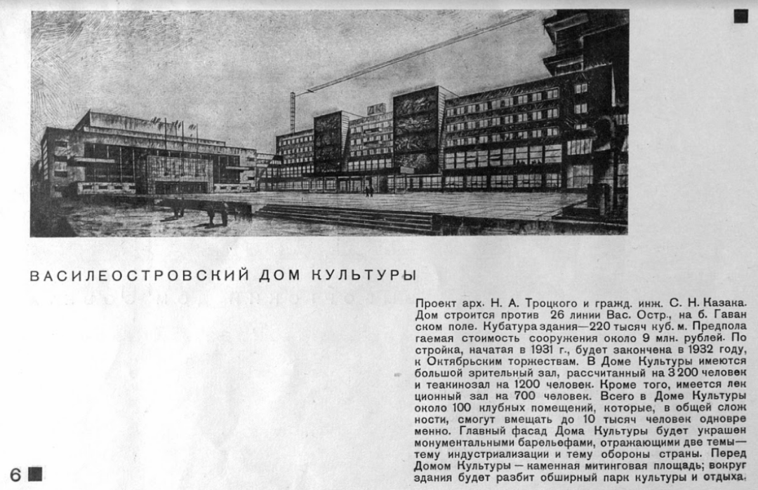 В общедоступной бесплатной коллекции оцифрованных библиотекой имени Маяковского документов нашелся альбом «Ленинград – образцовый социалистический город» 1932 года. В нем собрано 19 проектов новостроек и трансформаций исторических зданий. Специально для «Собака.ru» краевед и создательница блога о Петербурге @mettachtile Ксения Сидорина выбрала несколько самых интересных и рассказала, что осуществилось, а что осталось лишь фантазией (и, пожалуй, хорошо, что так!)