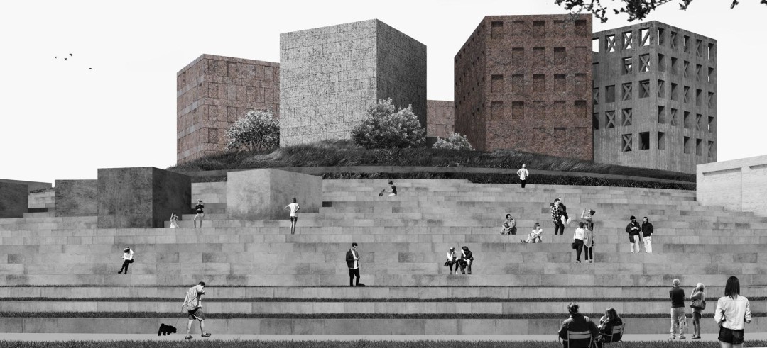 2. Переосмыслить бетонные основания нереализованных проектов. Сейчас 60% площади участка занято бетонными фундаментами зданий Судебного квартала. Участникам конкурса предлагают «придумать, как с архитектурной точки зрения переосмыслить эти конструкции и рационально использовать их для размещения функциональных зон, парковых сервисов и формирования ландшафтных решений».