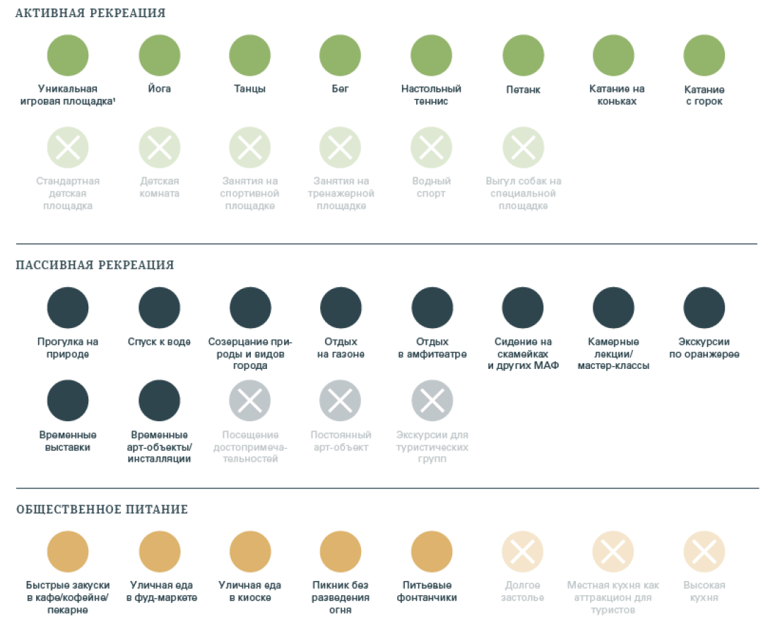5. Найти компромисс между интересами разных посетителей. В ТЗ подчеркивается, что посетителей в парке будет много, не у всех из них будут схожие ценности и запросы. Чтобы минимизировать конфликты, нужно работать «над пространственным зонированием и социокультурным программированием парка».