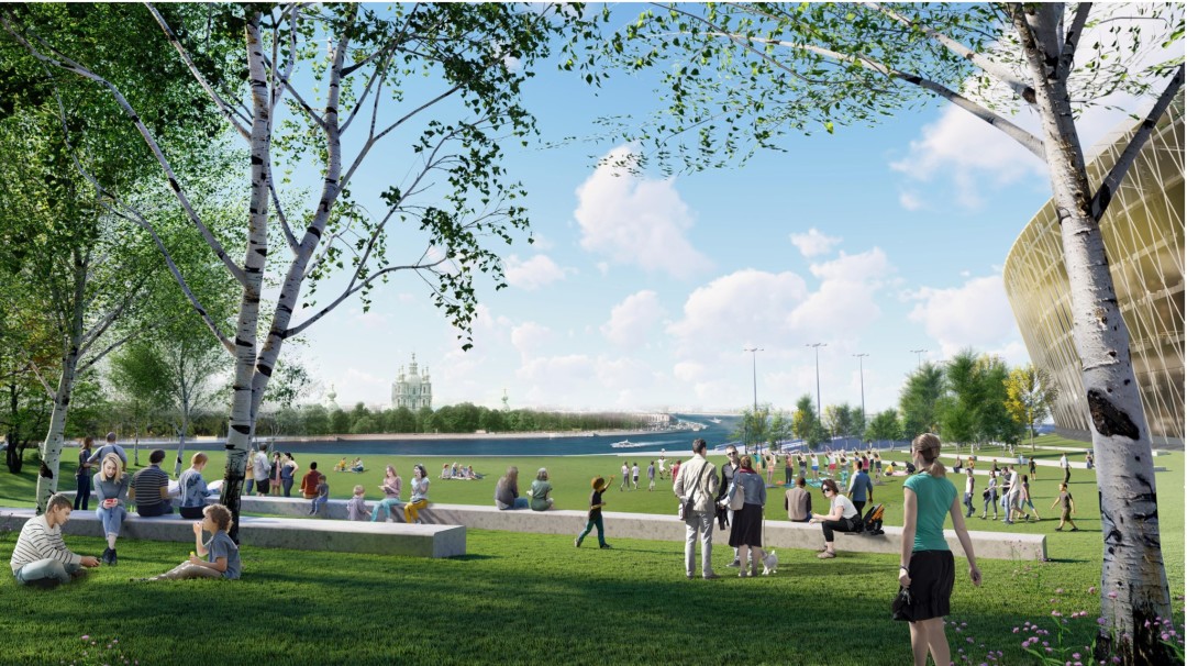 Если корпоративные здания раньше напоминали неприступные крепости, которые оберегала охрана, то здесь, на Охте, мы хотим создать комплекс, который откроет свое сердце людям. Во входной зоне мы продумали гостеприимную площадь со множеством развлечений и ландшафтным парком, отвечающим запросам посетителей во все сезоны. На набережной будет открытая зеленая зона, которую можно использовать для разных активностей: игр с детьми, прогулок, занятий йогой или любования новогодними огнями. На крыше здания также будет общедоступная просторная обзорная площадка.
