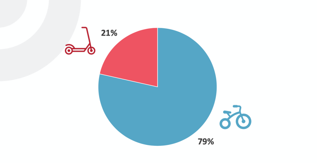 Первое, что мы выяснили: в общем потоке людей на средствах индивидуальной мобильности велосипедистов — 79%. Второй интересный момент: там, где нет велосипедной инфраструктуры, 77,5% ездят по тротуару. Получается, что меньше четверти передвигаются по проезжей части, хотя именно так правильно по ПДД. Но даже там, где есть велополосы, 24,5 % людей игнорируют их. Это происходит из-за низкого качества велоинфростуктуры, часто велодорожки совмещены с пешеходной частью, поэтому опытные велосипедисты едут по дороге, чтобы не мешать людям и быстрее добраться до нужного места.