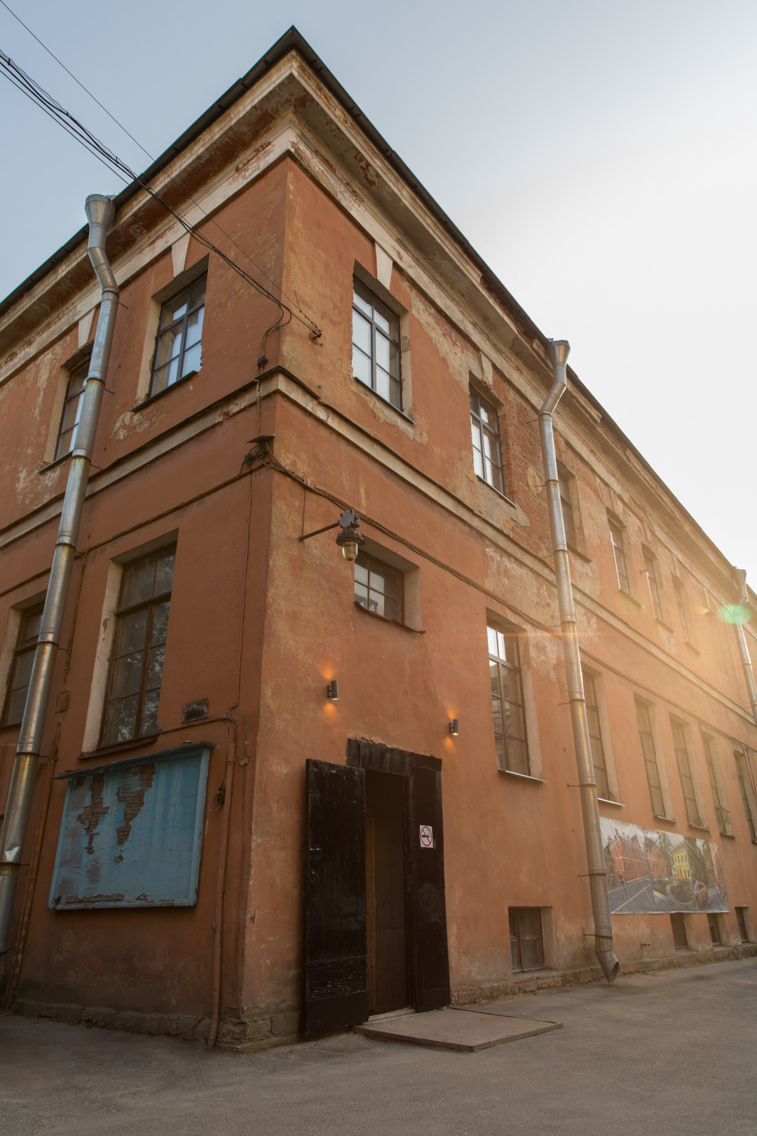 C 1940-х здесь располагался научно-исследовательский институт военной медицины ВМФ. Раньше объект был закрытым, а мы впервые за десятилетия открыли сквозной проход через территорию. Последние четыре года здания пустовали. Я взялся за это место год назад, тогда стены тут были в плесени, все текло и разваливалось. Мы поменяли коммуникации, электрику, окна, все отмыли, обновили крышу, привели в порядок стены и полы. Радикально ничего не меняли — старались сохранить первозданный вид. Фасады пока не трогали — они находятся под охраной КГИОП.