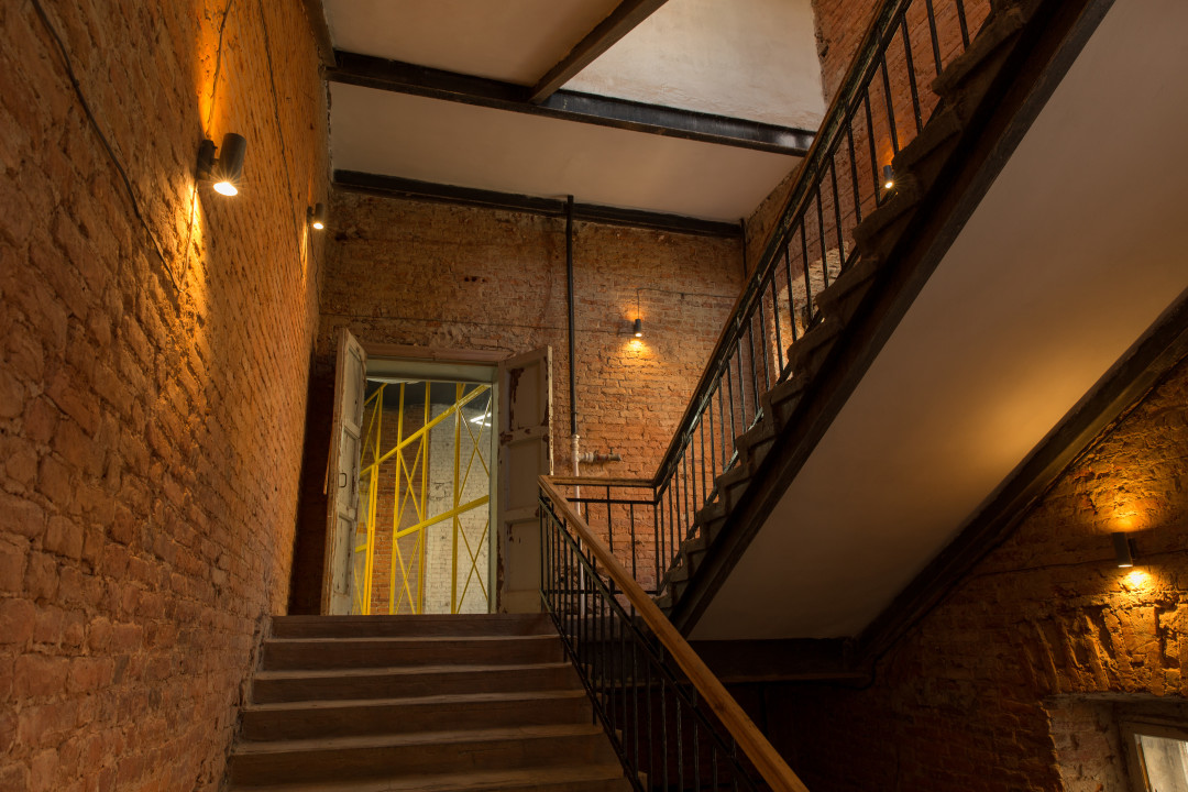 Наш лофт располагается в бывших казармах Семеновского полка 1906 года — четыре здания и двор по адресу Рузовская улица 10-12. Сейчас функционируют два из них, третье — концертная площадка — откроется в конце октября, четвертый — в 2022 году.