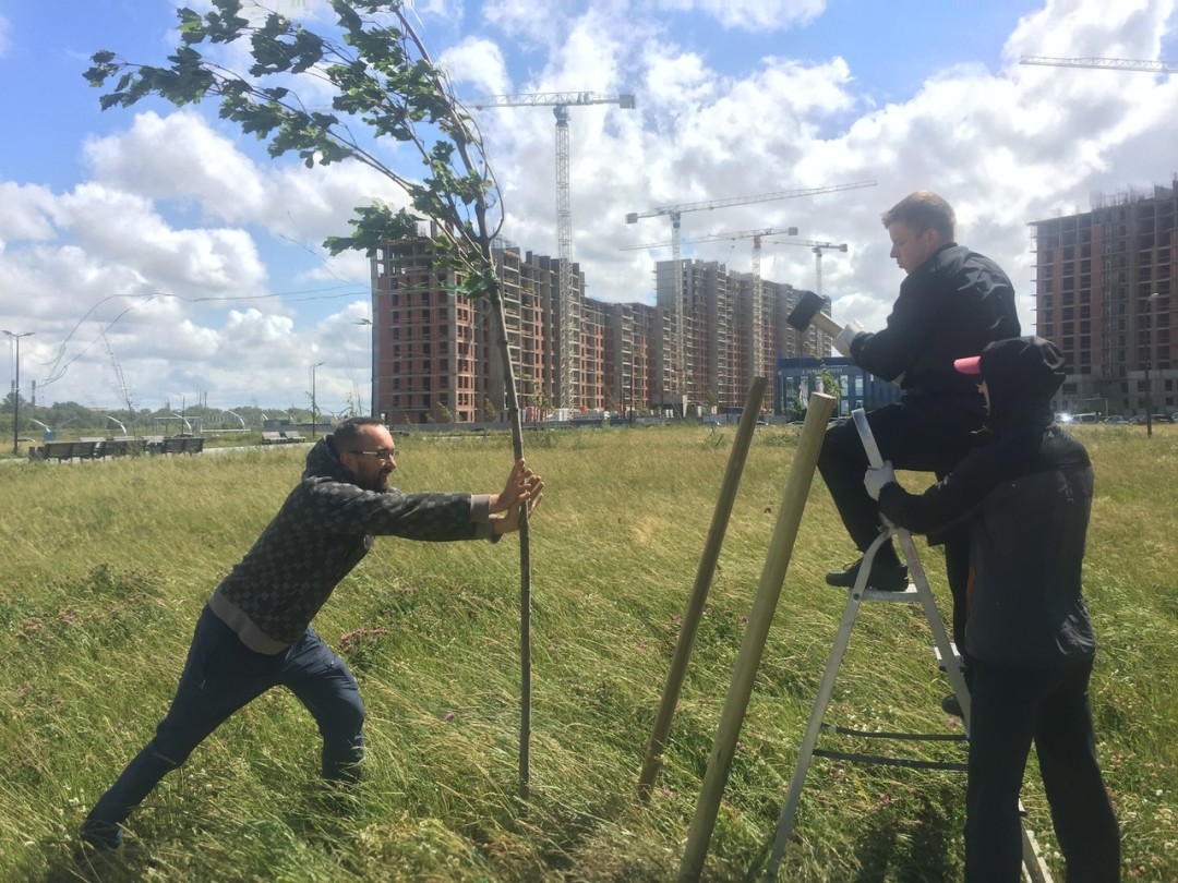 В день посадки на машине едем в питомник, привозим растения и высаживаем. Агитируем людей выходить на прогулку с канистрой и заодно поливать будущий парк. А дальше наблюдаем и любуемся результатом (самый любимый этап!). Потом размещаем публикации в социальных сетях, благодаря чему к озеленению намыва удается привлечь не только жильцов комплекса, но и людей из других районов города.