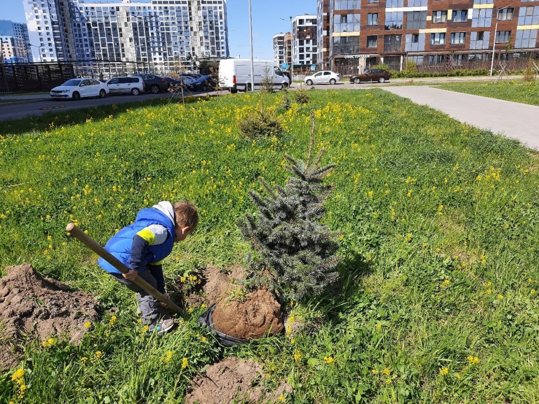 Так как территория не передана на баланс города, высаженные здесь деревья погибали, а уборка проводилась редко. Мы начали сами проводить субботники — агитировали соседей на них приходить, расклеивая объявления. А весной 2019 года организовали сбор средств и высадили около 100 деревьев крупных пород, в основном елей и сосен, а также кустарники. В мероприятии приняли участие более 100 человек.