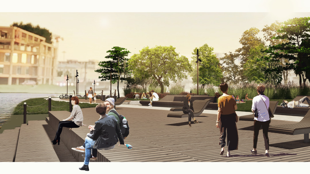 Прогулочный маршрут пройдет мимо двора Петровского, 20, зонирование должно разделить общественное пространство набережной и полуприватное пространство жилого двора, в котором будет установлена новая детская площадка. На самой набережной жители просили не делать каких-то больших точек притяжения — там появится освещенная дорожка с местами для тихого отдыха, деревянными настилами для рыбалки, лавочки в природном стиле из бревен, урны, много нового озеленения. Также будет сохранен небольшой пляж.