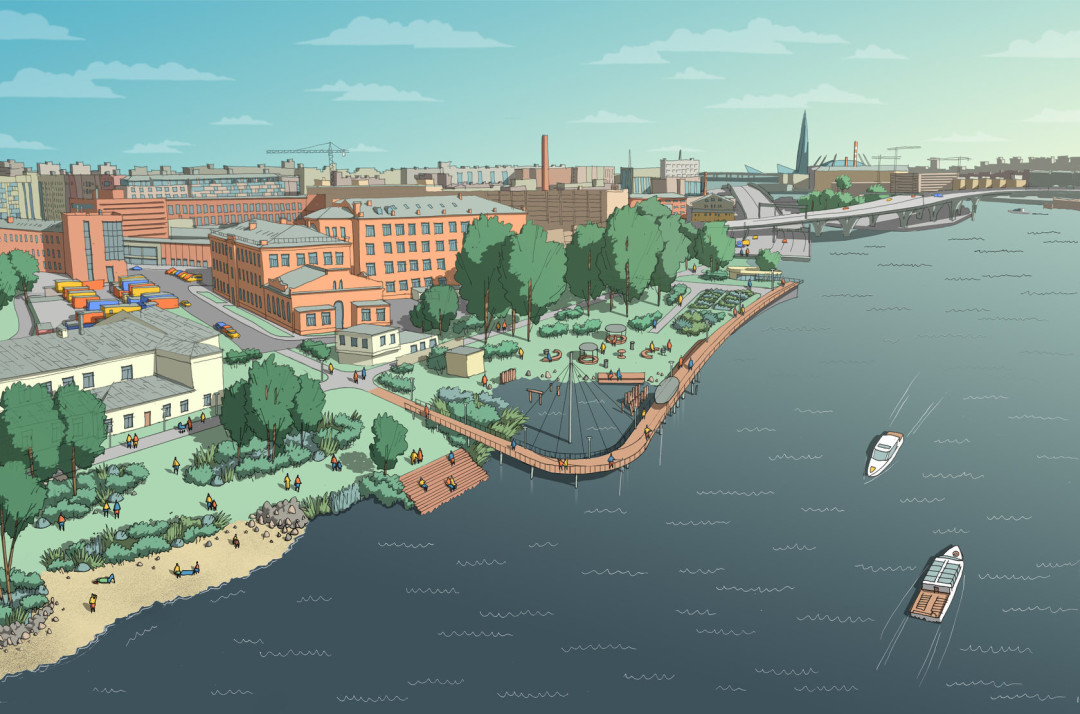 Мы хотели бы войти в диалог с «Максидомом» — им принадлежат две трети здания завода и территория вокруг. Пока мы им пишем, но они не отвечают. В рамках государственно-частного партнерства они могли бы вложиться в благоустройство этого места. С их помощью здесь можно было бы реализовать новый тип пространства — общественно-природное, куда люди приходили бы и для отдыха, и для контакта с природой. Расположение на берегу Малой Невы сделает его одним из лучших в городе.