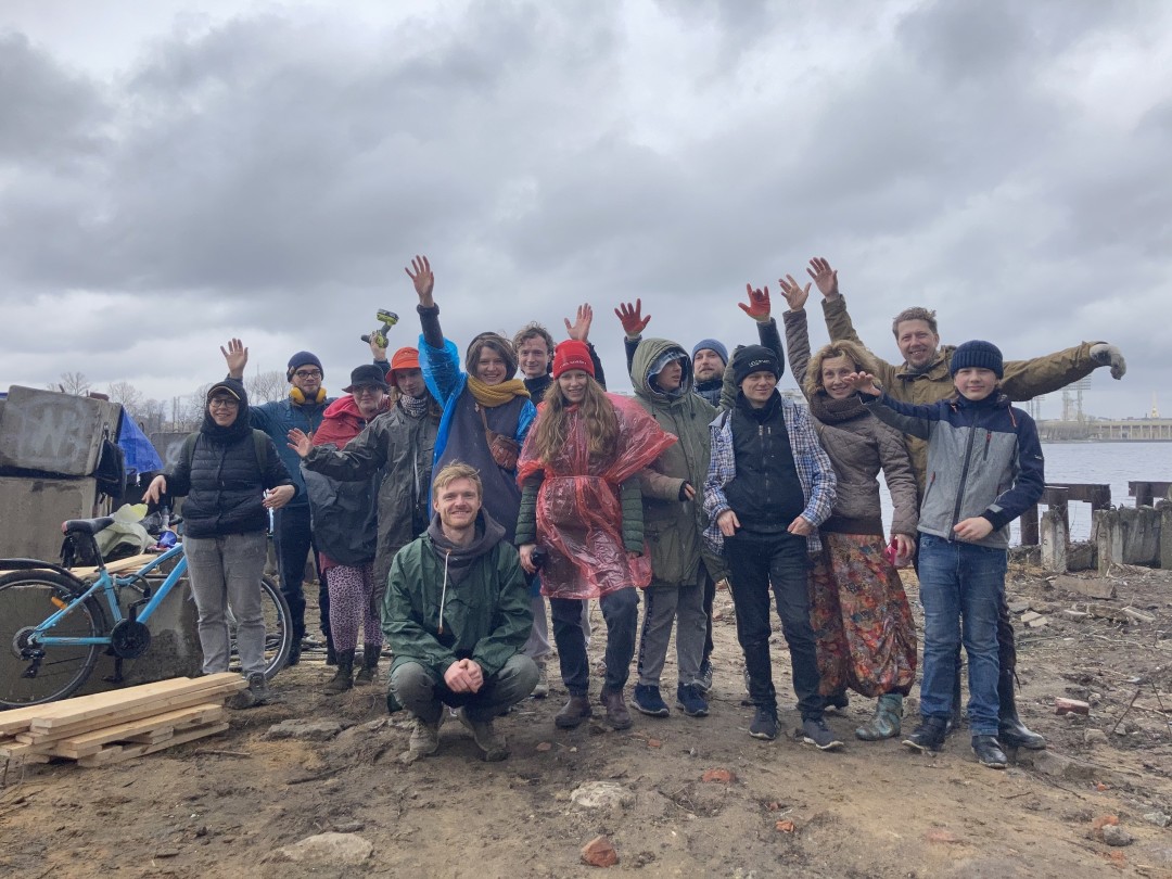 В начале весны организовали в Зарослях Масленицу — привезли старую мебель, позвали местных, водили хороводы. Потом вместе с местными перекрасили лежащие сваи так, что они стали выглядеть, как гигантские карандаши. Там же начали создавать скамейки из паллет. 25 апреля провели масштабную уборку, на которую пришла уже куча людей. Каждый помогает по мере сил. Федор классно обращается с пилой — он сделал хорошую постоянную скамейку. Места костров выложили кирпичом, разместили таблички по всему берегу с информацией о проекте. На эту же встречу, например, пришел местный житель, который выкапывает тут старый металл и заодно регулярно убирает территорию — он обрадовался, что нам интересна это место.