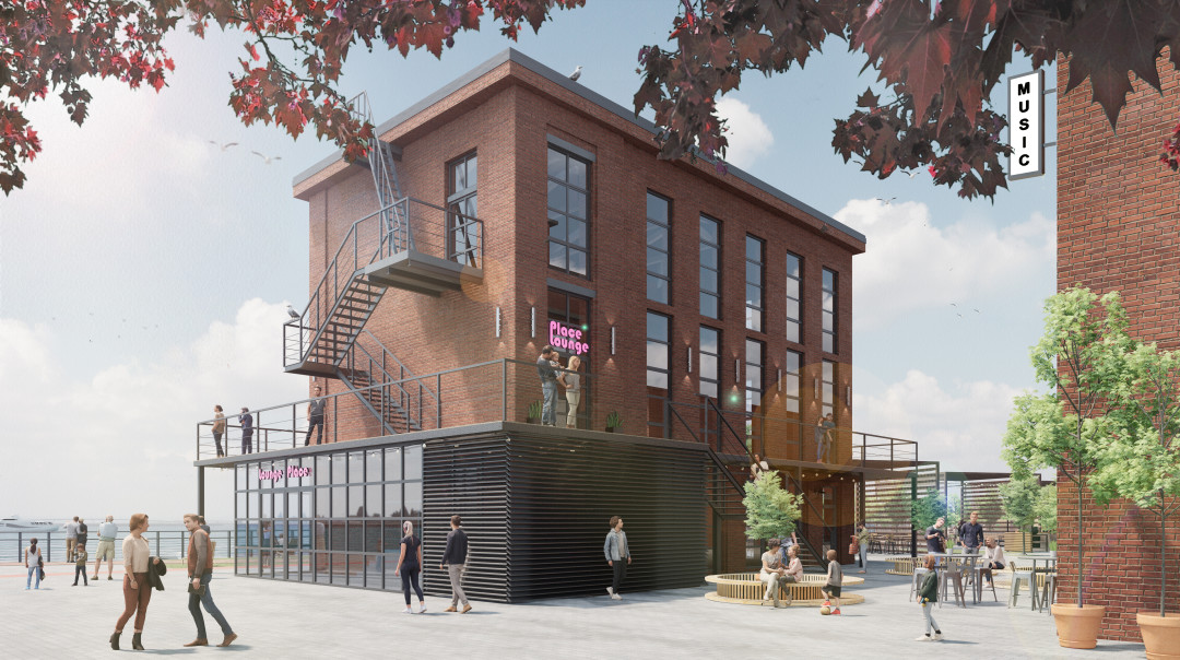 На следующий год планируем закончить ландшафтный дизайн и создать объекты для отдыха на набережной. Также в 2022 тут появятся театральные и киностудии, клуб, большая спортивная зона с залом для сквоша в ангарах. Тогда же появится большая объединенная с соседними пространствами прогулочная зона. Третий этаж с арочными окнами и видом на залив отдадим мастерским, творческим студиям и образовательным проектам.