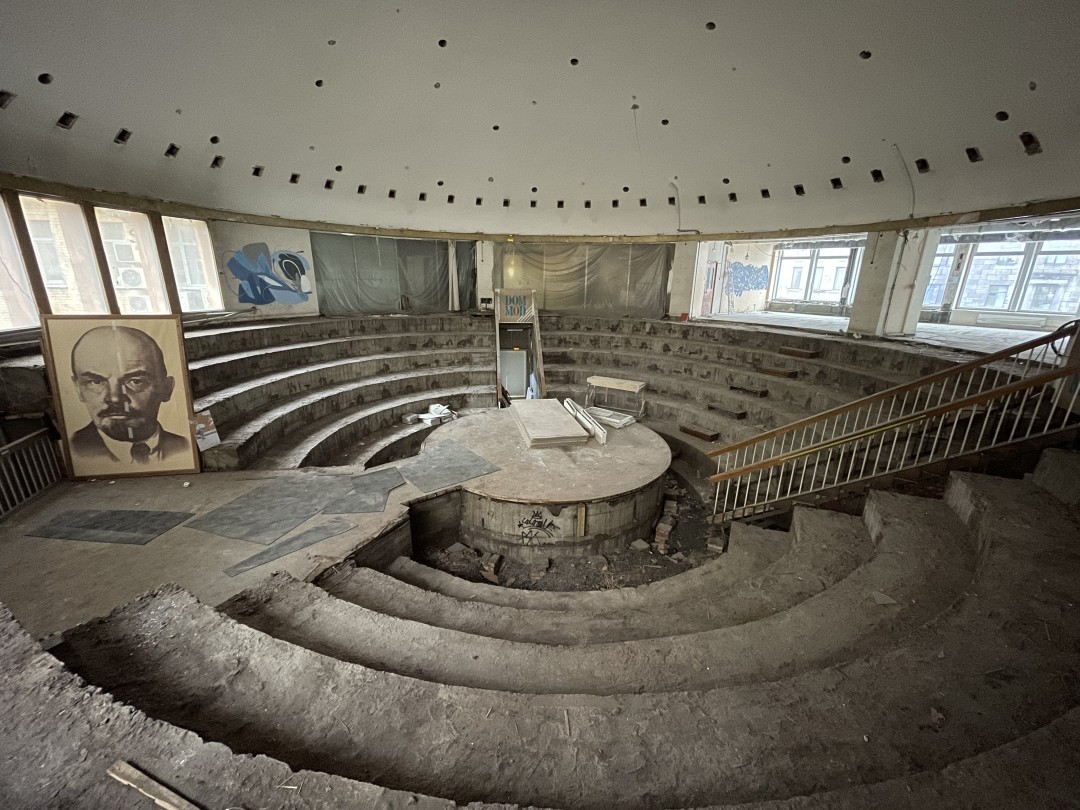 Центр этого этажа – амфитеатр на 300 посадочных мест — станет площадкой для презентаций новых коллекций, проведения независимых кинопоказов, арт-перформансов, мастер-классов и концертов. В советские годы здесь проходили показы мод. Пространство избавили от старых кресел и проведут реновацию, но историческая круговая сцена здесь сохранилась. В свободное от мероприятий время амфитеатр будет открыт для посетителей — здесь можно будет посидеть с ноутбуком или выпить кофе. В июле, еще до ремонта, здесь уже состоятся два события, одно из них — вечеринка Test fm 31 числа.