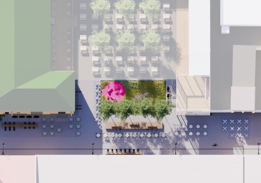В проекте мы разделили Волжский переулок на две части: улицу и площадь возле рынка. Жилая территория более спокойная по насыщению — здесь мы разместили уличную мебель, сделали мощение и определили места для посадки деревьев. А на территории возле Василеостровского рынка нам необходимо было переконфигурировать модули общепита. Благодаря чему место визуально стало казаться больше. И мы активировали новое петербургское пространство. Согласно проекту, здесь будут детская площадка, современная клумба с многолетними растениями, посадочные места с зарядными устройствами, новый трехуровневый павильон. На первом этаже которого расположатся Армянский дворик и цветочный павильон, на втором — лекторий, на третьем — зона посадки гостей.