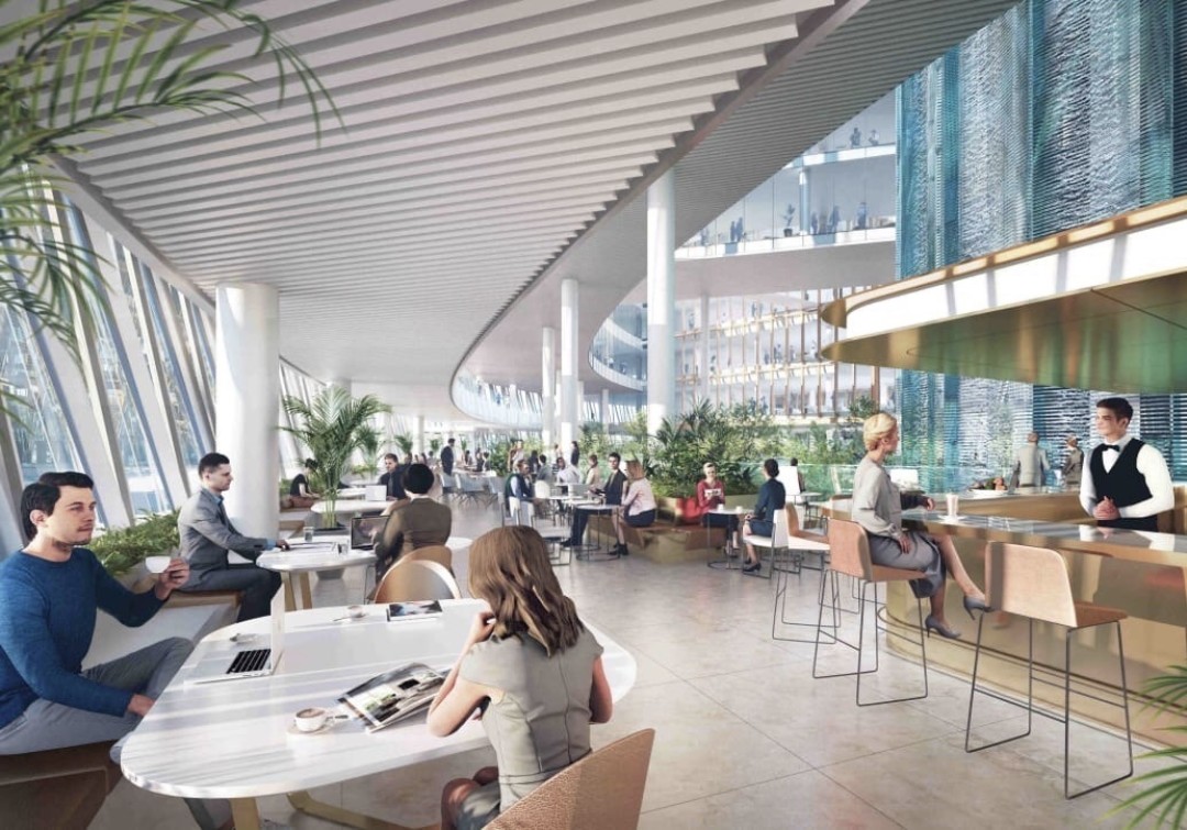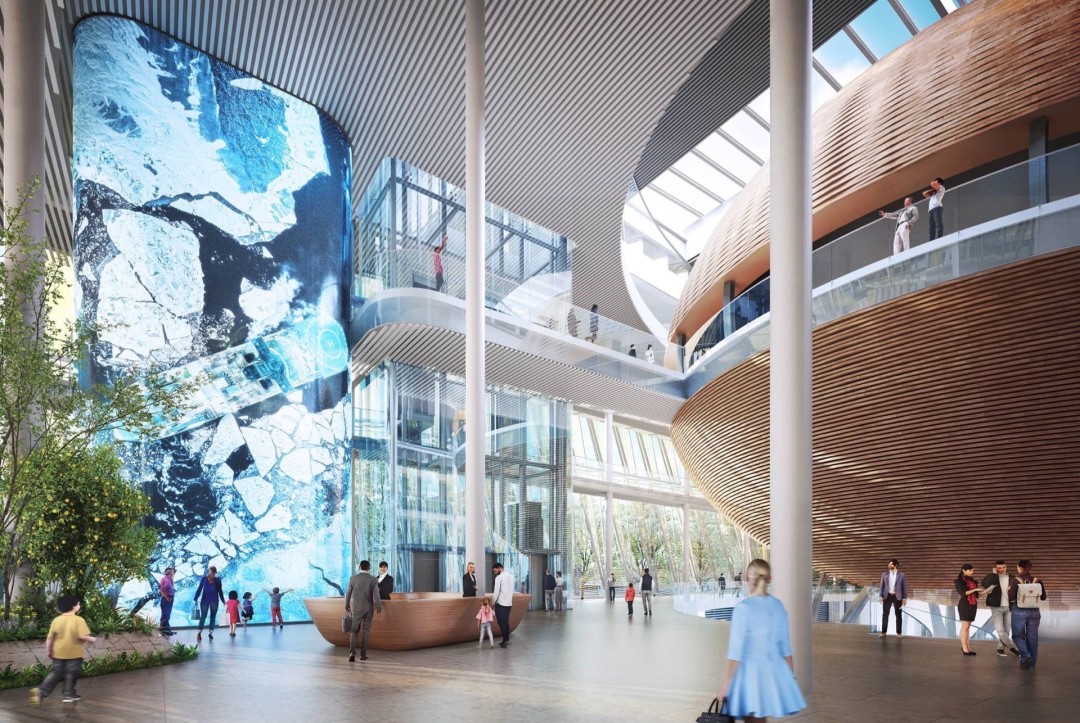 Тадао Камэи: «Обновленный Охтинский мыс сможет принимать гостей в любое время года. Петербург — город холодный, поэтому мы предусмотрели как открытые, так и зеленые внутренние пространства. Преобладающие оттенки внутренних пространств — природные: вода, зелень и земля — три составляющих, которые насыщают среду и будут делать пребывание здесь комфортным».