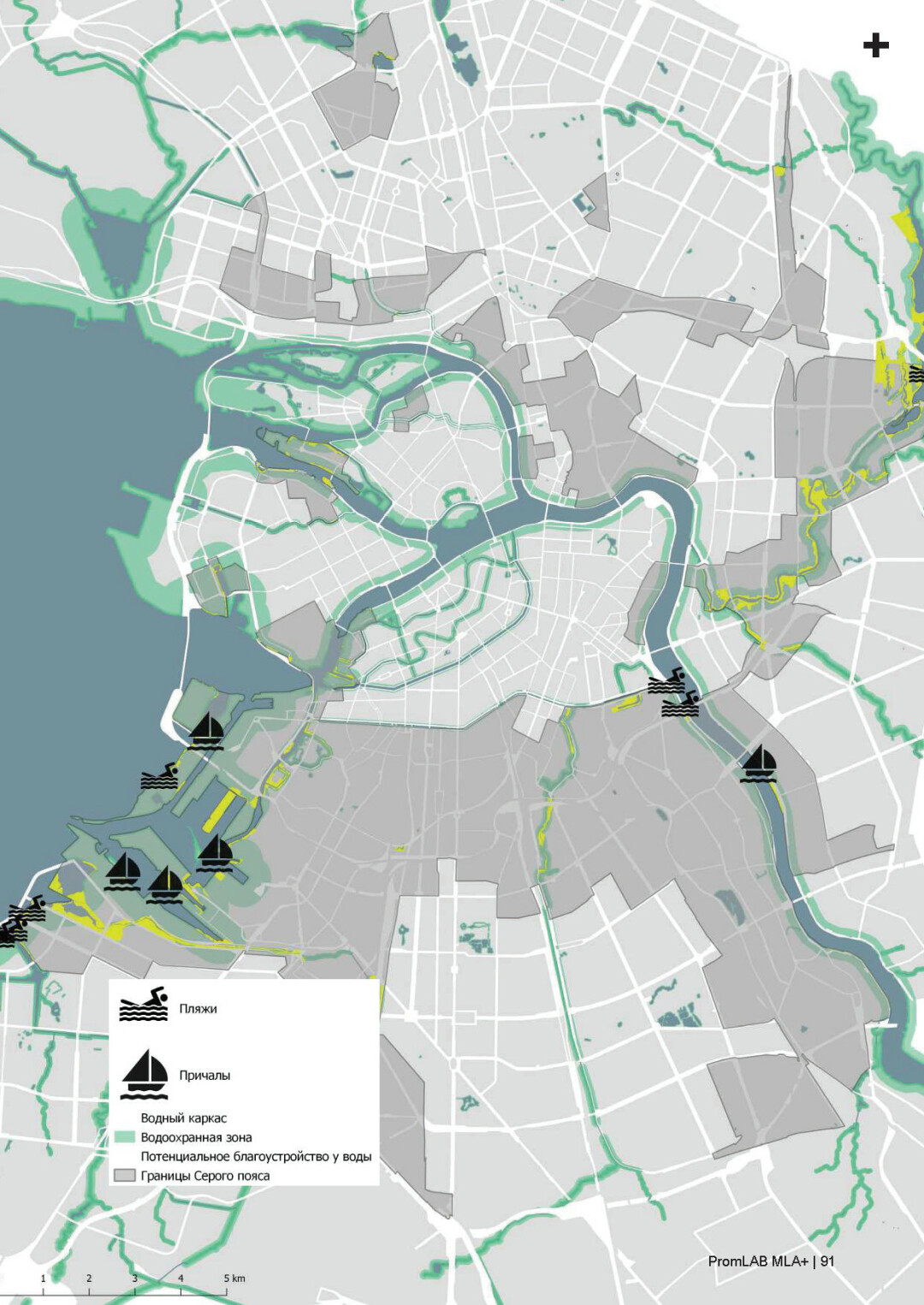 В случае наличия неиспользуемых территорий, рационально предоставить к ним доступ для общественного использования, тем самым создать «контактные точки» между жителями и промышленными предприятиями. Другой вопрос — набережные бывших промышленных зон, в том числе заброшенных, которые постепенно вводятся в использование, но в основном для транспорта и в частных целях. Данная концепция возникает из-за сложившегося отношения к «серому поясу» как к транзитной зоне. «В городе у воды», в котором множество береговых пространств, наблюдается дефицит набережных с качественным благоустройством, и город продолжает терять этот потенциал.