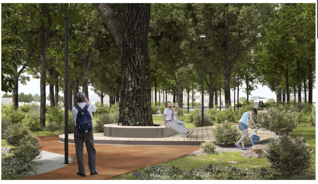 Долгое время на территории отсутствовало освещение, не было благоустроенных подходов к воде. Жители использовали место как транзитный путь к основным достопримечательностям города, но именно здесь проходит экскурсионный маршрут исторического музея Шлиссельбурга. Концепция преобразования — проект победителей архитектурного турнира HackCitySpaces 2.0 Виктории Пупенцовой, Анны Голдобиной, Марией Дружининой, Викторией Пискуновой, Екатериной Басай, Татьяны Дмитриевой. Она не только сохраняет пешеходные транзитные пути, но и подразумевает маршрут по ключевым точкам парка, сопровожденный справочными стендами: памятник жертвам военной оккупации Великой Отечественной, довоенный дуб, около которого раньше была организована танцплощадка, смотровая площадка с видом на Малоневский канал, место попадания снаряда (историческая воронка) с садом сирени и амфитеатром. Будут зоны тихого отдыха, спортивная и детская площадки, качели, навесы, а еще восстановят танцплощадку в духе авангарда.