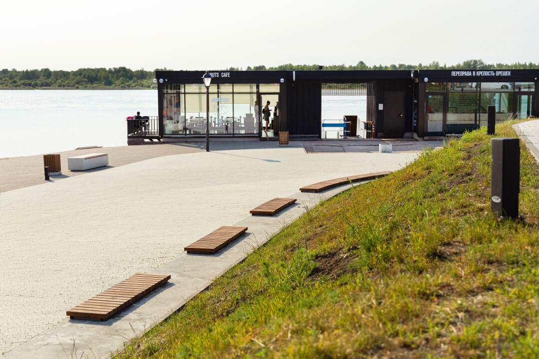 По пути к крепости Орешек останавливаемся в Павлово-на-Неве на пикник: скейт-рампа и зона для костра на обновленной набережной. Местные жители всегда использовали территорию карьера возле Советской, 9 как городской пляж. Но долгие годы здесь отсутствовало освещение, а зоны отдыха были скорее стихийными, чем цивилизованными. Теперь на территории площадью более 14 тысяч квадратных метров под чутким руководством Центра компетенций Ленобласти обустроили барбекю-зону с беседками у воды, детскую площадку в экостиле, террасный настил с лежаками и креслами под теневым навесом, променад вдоль карьера и очаг для разведения костра с видом на Кузьминский мост через Неву. Есть памп-трек, скейт-рампы, качели и турники.