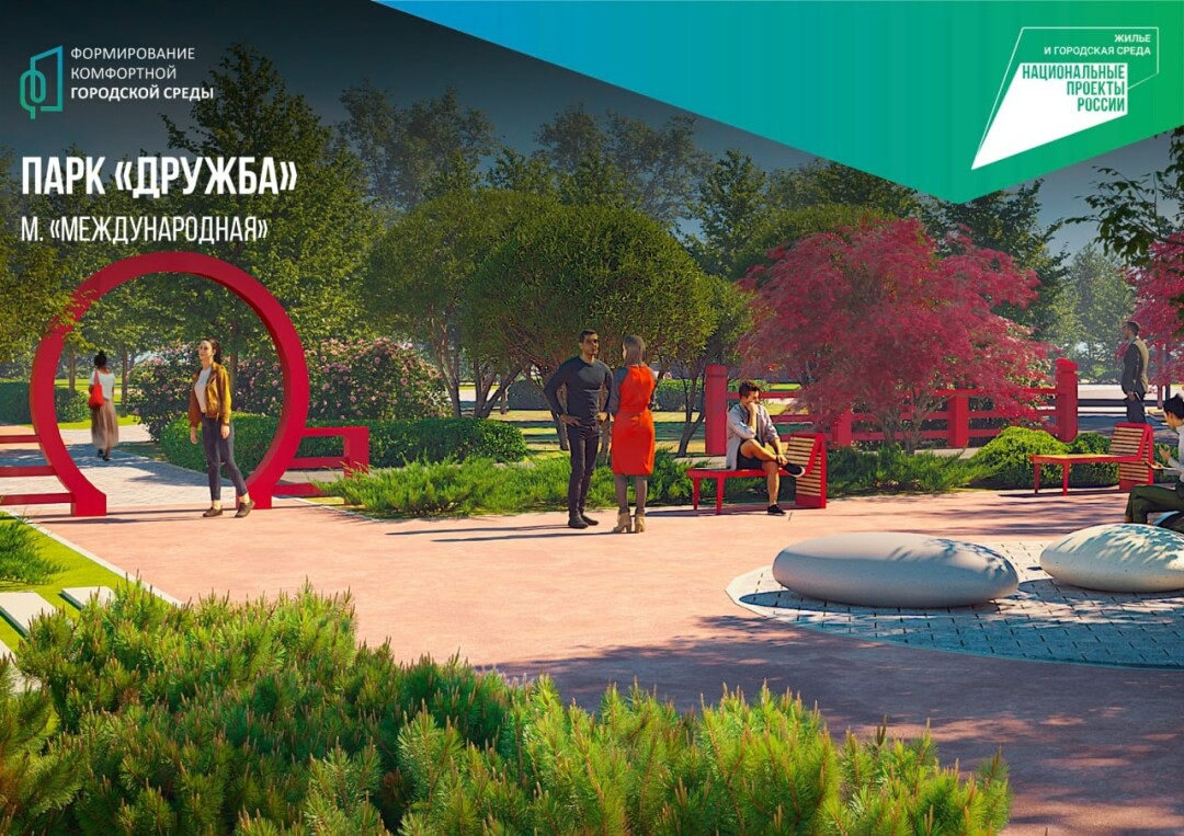 Помимо современной уличной мебели, высадки почти 600 деревьев и кустарников, обустройства детской площадки из массива лиственницы со стационарными музыкальными инструментами, в парке будет размещен амфитеатр и сцена для проведения мероприятий. Также на благоустроенной территории будет установлена почти 7 метровая в диаметре карта восточного и западного полушарий из термодревесины хвойных пород и металла.