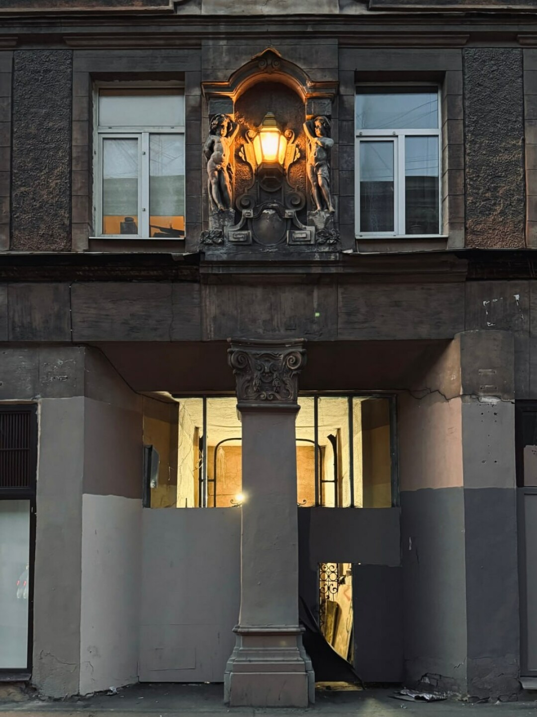 «Гэнгъ» во главе с Ксюшей Сидориной расшили парадный вход на Разъезжей улице, 16-18 — ранее команда отремонтировала вмонтированный в фасад этого дома старинный фонарь (не горел минимум 80 лет!). Исторически под фонарем был шикарный вход: жители проходили высокие застекленные кованные ворота, затем открывали дверь и попадали в вестибюль. Вход зашили металлическим листом, вероятно, в СССР. Сейчас команда уже расшила вход, почистила ворота и собирает средства на установку двери.