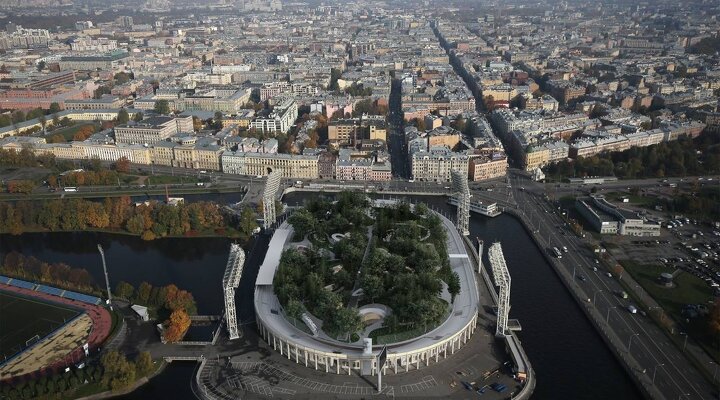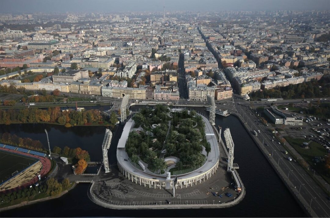Концепт представляет собой синтез природной среды и публичных функций, реализованный через систему вертикального зонирования территории. Основой решения стало создание двухуровневой структуры «парк-подиум». На верхнем уровне формируется зеленый амфитеатр — общественный парк с пешеходными маршрутами, игровыми площадками и видовыми перспективами на акваторию Невы. Проект архитектора Евгения Ростовского (STUDIO ROSTOVSKII) победила в номинации «Пространства будущего» премии ADD Awards 2026.