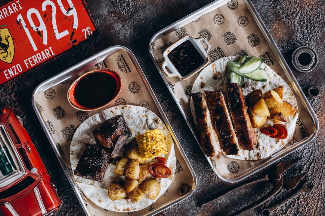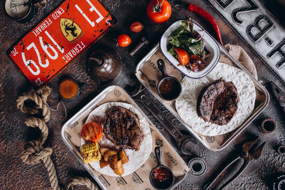 Словно химик в лаборатории, Леонид создает свои формулы вкуса. Пыль из свеклы, мусс из лука порея, земля из маслин, укропное масло. Как насчет борща с копченой вишней, пельменей с судаком и щучьей икрой, шашлыка из языка с крем-хреном, который восемь часов маринуют при низких температурах? Эти блюда — новинки ресторана Garage Pub, самого молодого заведения семьи, брутального стейк-хауса с панорамными окнами на зеленый сад, оформленного в стиле «индустриальный лофт».