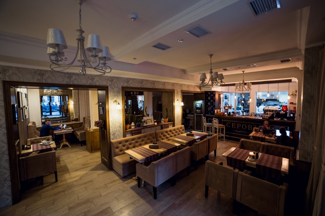 Здесь нет случайных гостей. Все, кто приходит в «СеровЪ», становятся друзьями большой радушной семьи, которая приглашает, как к себе домой: братья и сестры трудятся на кухне и в баре, хозяйки сами надевают фартук и обслуживают гостей, готовят для них блюда, которых даже нет в меню.