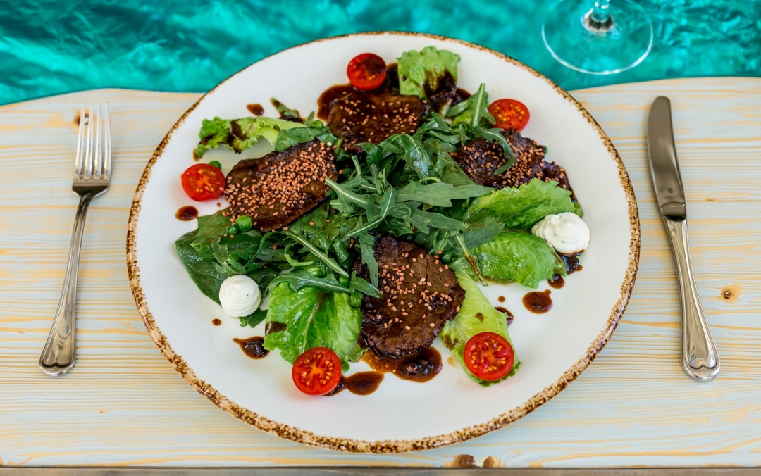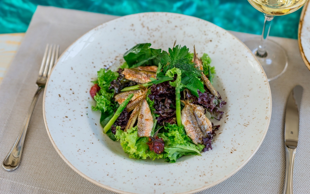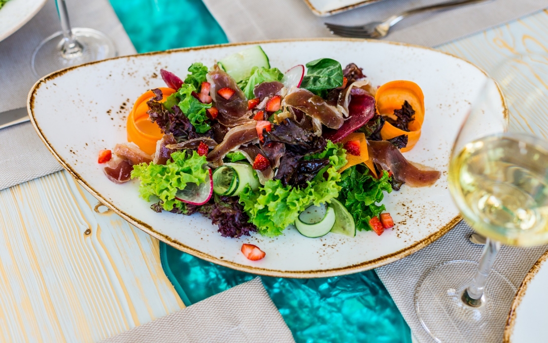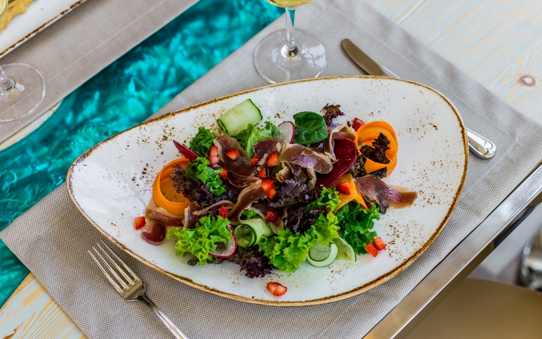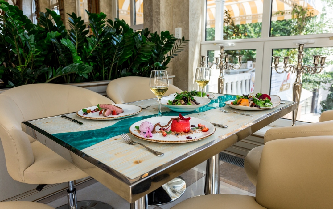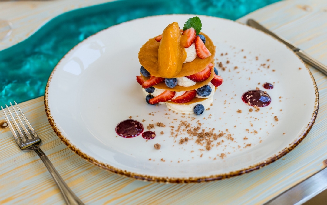 Ольга: Хотелось сделать акцент на понятной и доступной кухне для местных жителей. И самое главное — вкусной, приготовленной с душой и открыто. Гордимся нашими полезными завтраками. Гречневая, овсяная, рисовая каши готовятся по выбору гостя на молоке коровьем, кокосовом или без молока вовсе. С добавлением растительного или сливочного масла, фруктов, горного крымского меда. А еще у нас есть все возможные вариации завтрака из яиц, в том числе белковый омлет, — подаем со спаржей и зеленым горошком. Наши сырники — это произведение искусства, а все потому, что творог мы готовим сами.