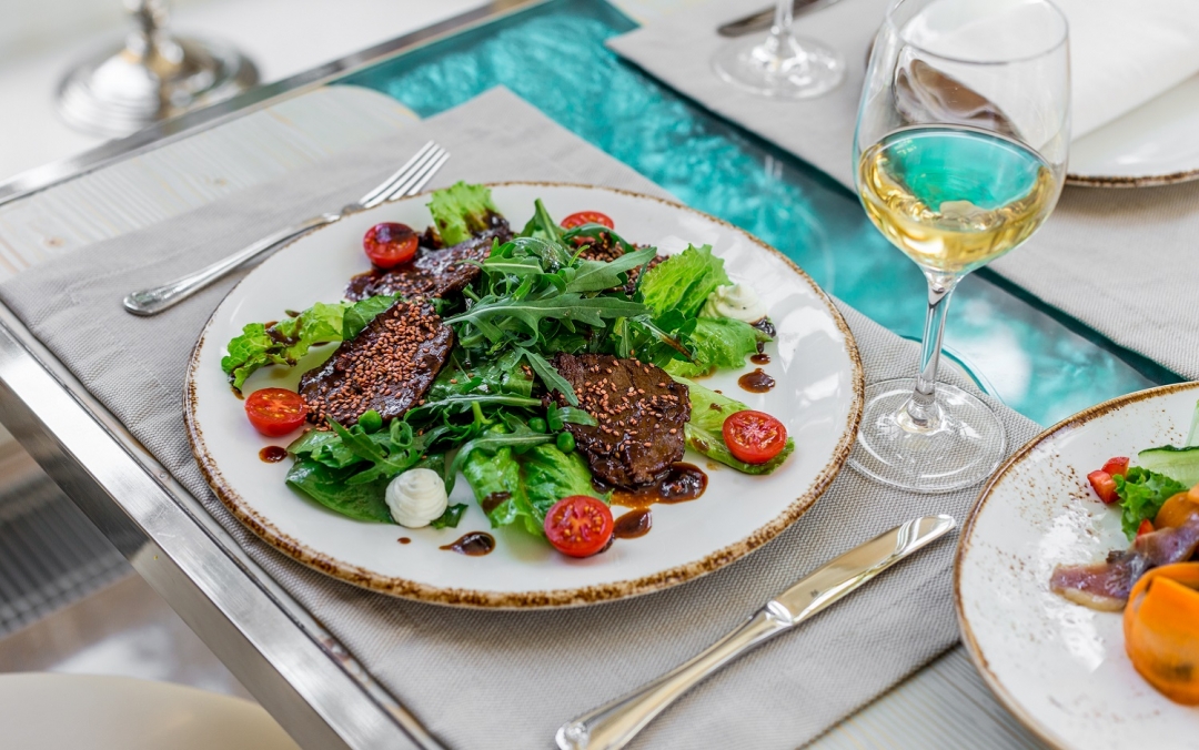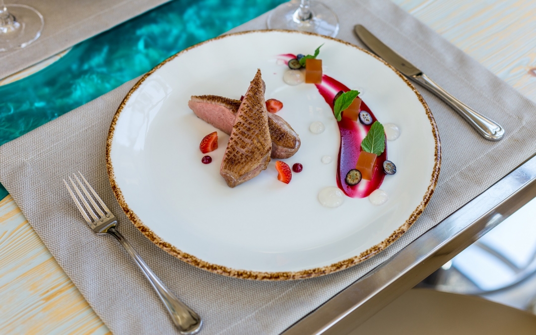 Мы представляем российскую кухню с французскими нотками. У нас не историческое меню, но по мотивам произведений Жюля Верна: что могли есть те или иные герои его произведений, о чем указано в его романах. Рекомендую обязательно попробовать паштет из утки с мороженым из печени. А еще — наши томленые рапаны, мягкие и нежные