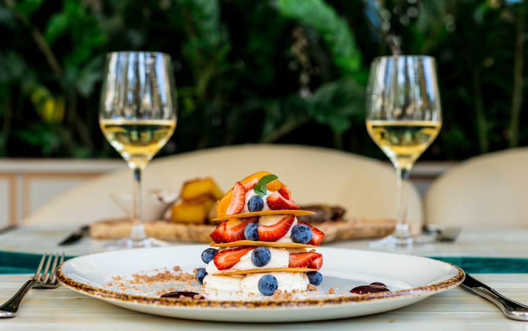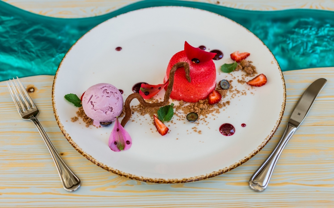 На десерт здесь предлагают мороженое собственного производства, сваренное из молока с розмарином и лавандой. А шеф-кондитер открывает по-новому классические чизкейк, тирамису и фондан и готовит вишневую вариацию «Наполеона».
