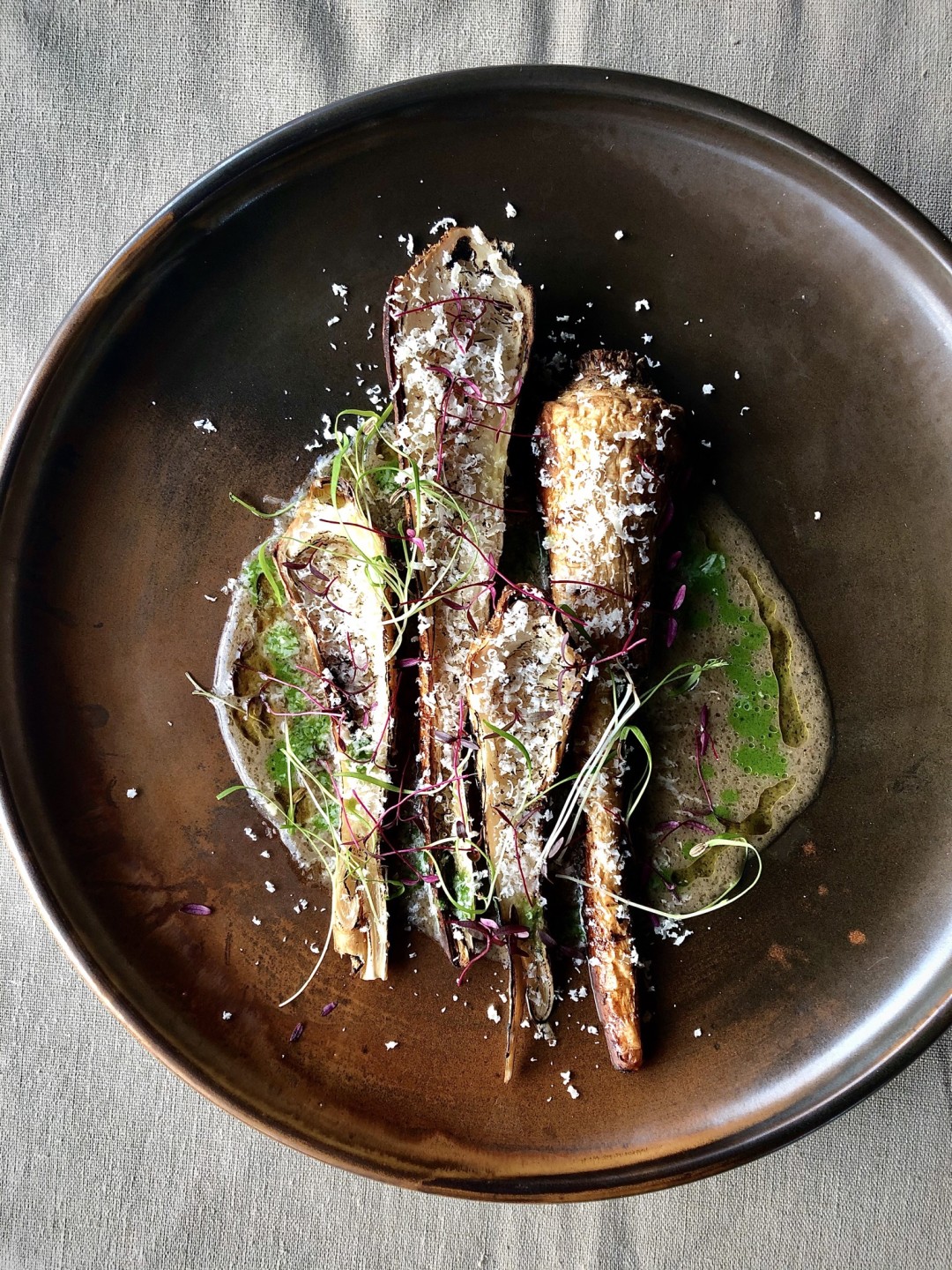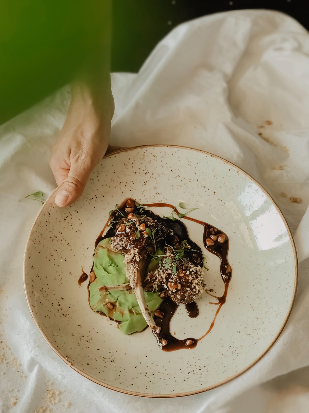 Я очень надеюсь, что в Севастополе и Крыму рестораны будут тянуться к этому тренду. По крайней мере, в «Соли» мы начали это делать. В целом пятьдесят процентов блюд моего меню имеет азиатские мотивы или копчения, те вещи, которые заставляют тебя почувствовать этот яркий вкус, этот вау-эффект и то, что запомнится. Это могут быть даже хорошие помидоры летом, и это уже решает яркость вкуса. Еще, например, простые брокколи и цветная капуста, которые мы обжариваем в мисо-масле, уже добавляют вкуса блюду. Дополняем все копченым угрем — еще усиление, затем яркий пикантный солено-сладко-кислый соус на основе миндаля с имбирем и паприкой. И вот, эти овощи уже приобретают совершенно другой вкус. Это не то, что мы привыкли есть: в сливках и с пармезаном. Это совсем другое дело. Многие мои блюда, например, цыпленок, запеченный в маринаде кимчи с копченым йогуртом, отвечают этому тренду уже. Это те вещи, которые заставляют твои рецепторы ощутить что-то совершенно новое, не то, что мы привыкли всегда здесь есть.