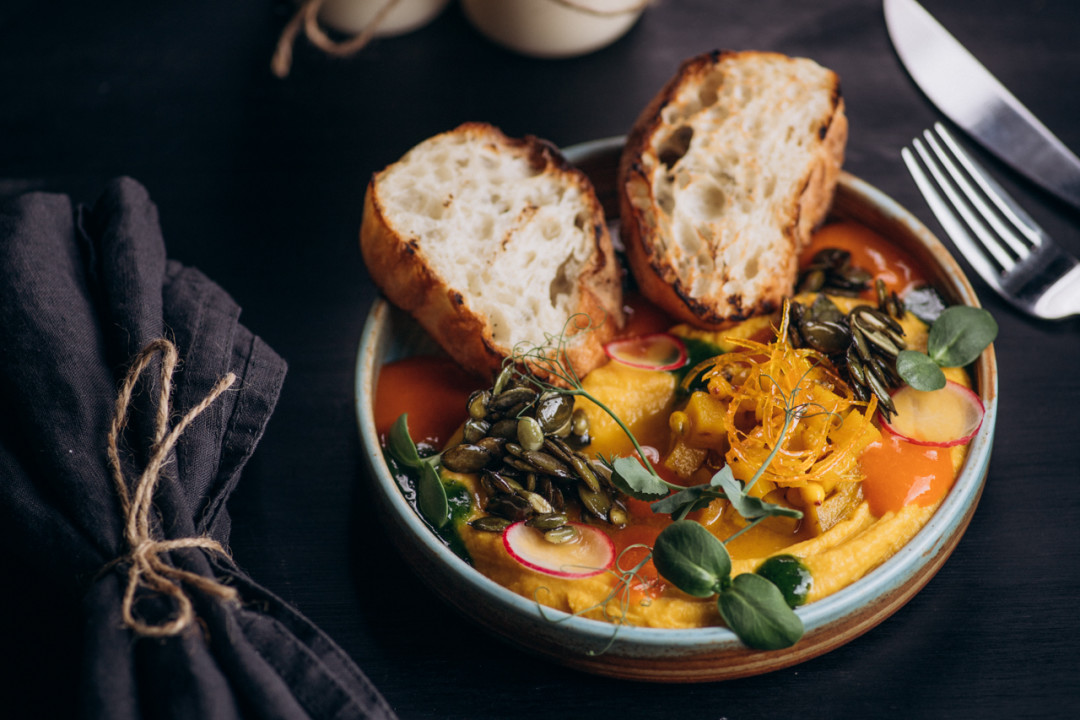 У нас будет отдельное вегетарианское и здоровое меню, в котором не будет мяса, рыбы, яиц, дрожжей. Полба, например, считается очень полезной крупой, но многие не знают о ее плюсах. Когда будем составлять меню, то не только названия напишем, но и свойства ингредиентов.
