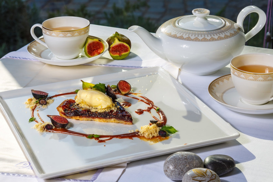 Пока в Mriya Resort & SPA нет специального огорода под рестораны, он в планах. Однако вся территория отеля — большой сад с разнообразием растений, некоторые из которых съедобные. Так, например, там растет инжир, хурма, ароматные травы, оливки, гранат, мушмула. Оливки вымачиваем сорок дней и ставим в маринад по рецепту, которым пользовалась семья моего мужа в Апулии на протяжении сотни лет. Их вместе с нашими травами используем в салате Нисуаз в ресторане Salt, а также подаем и как самостоятельное блюдо. Оригинальный десерт из хурмы введем в осеннее меню и будем подавать в ресторане Forestino. Плоды инжира — для тарта Татен, его можно попробовать в Villa Cafe.