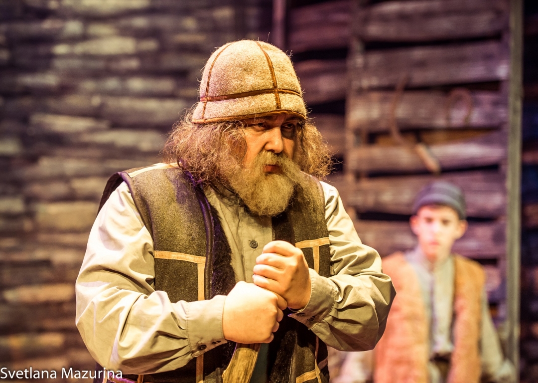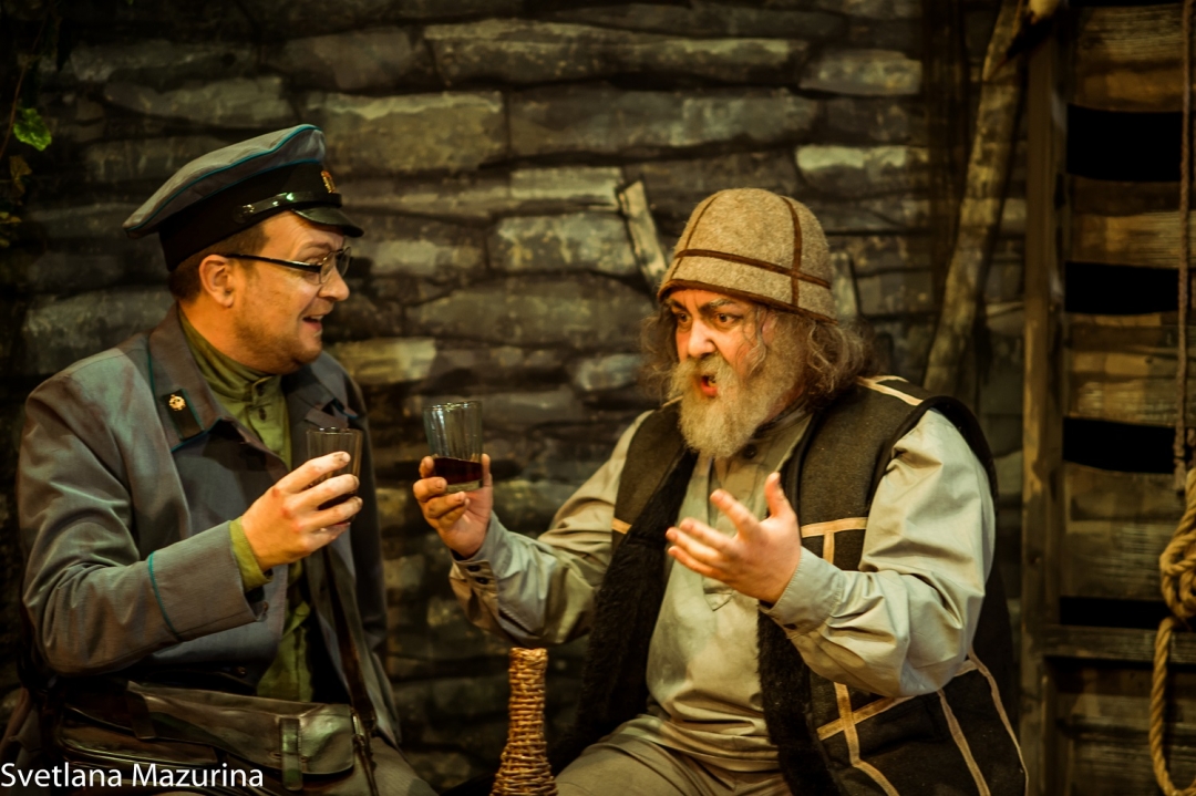 Голодная война не щадит никого: есть, как в последний раз, петь, как в последний раз, молиться Богу, как в последний раз. Режиссеры поставили перед артистом Сергеем Новиковыми сложную задачу сыграть героя совсем не по своему возрасту – старика Спиридона, борющегося со смертельной болезнью. Молодой актер не играет старость только физически. Да, ему труднее садиться, труднее вставать, но он не потерял себя. Можно сказать, что он приобрел новую для себя стариковскую логику действий, человеческую мудрость и опыт для понимания конфликта, сверхзадачи роли. Три фигуры - собака, птица и ангел – своеобразные тотемы, которые появляются из дерева тогда, когда приходит время. Дед предчувствует появление Собаки, письмо от сына с фронта, собственную смерть, а зал замирает, когда появляется новый символ… К добру ли это? Этот режиссерский ход проходит красной нитью через весь спектакль, связывая его воедино.