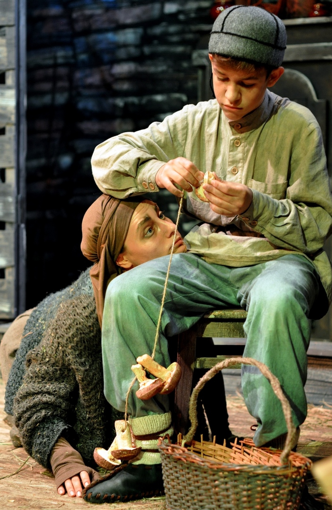 Моменты, где Собака и мальчик, возвращаясь к своей природе, наивно играют, вызывают смех и умиротворение в зале. Естественная детскость и искренность свойственны как первому, так и второму. Артисту-ребенку ничего не нужно делать, кроме того, как быть самим собой, только в советском детстве, где каждый мальчишка считает своим долгом притащить домой уличную собаку. Но когда перед ребенком становится серьезный выбор, а в копилке мудрости не находится нужных позиций, раскрывается весь диапазон актерского таланта, редкого дара внутреннего перевоплощения и необыкновенной сценической смелости. Мальчику дважды пришлось сражаться за жизнь Собаки. Первый раз с буфетчиком. Второй – со всем селом.